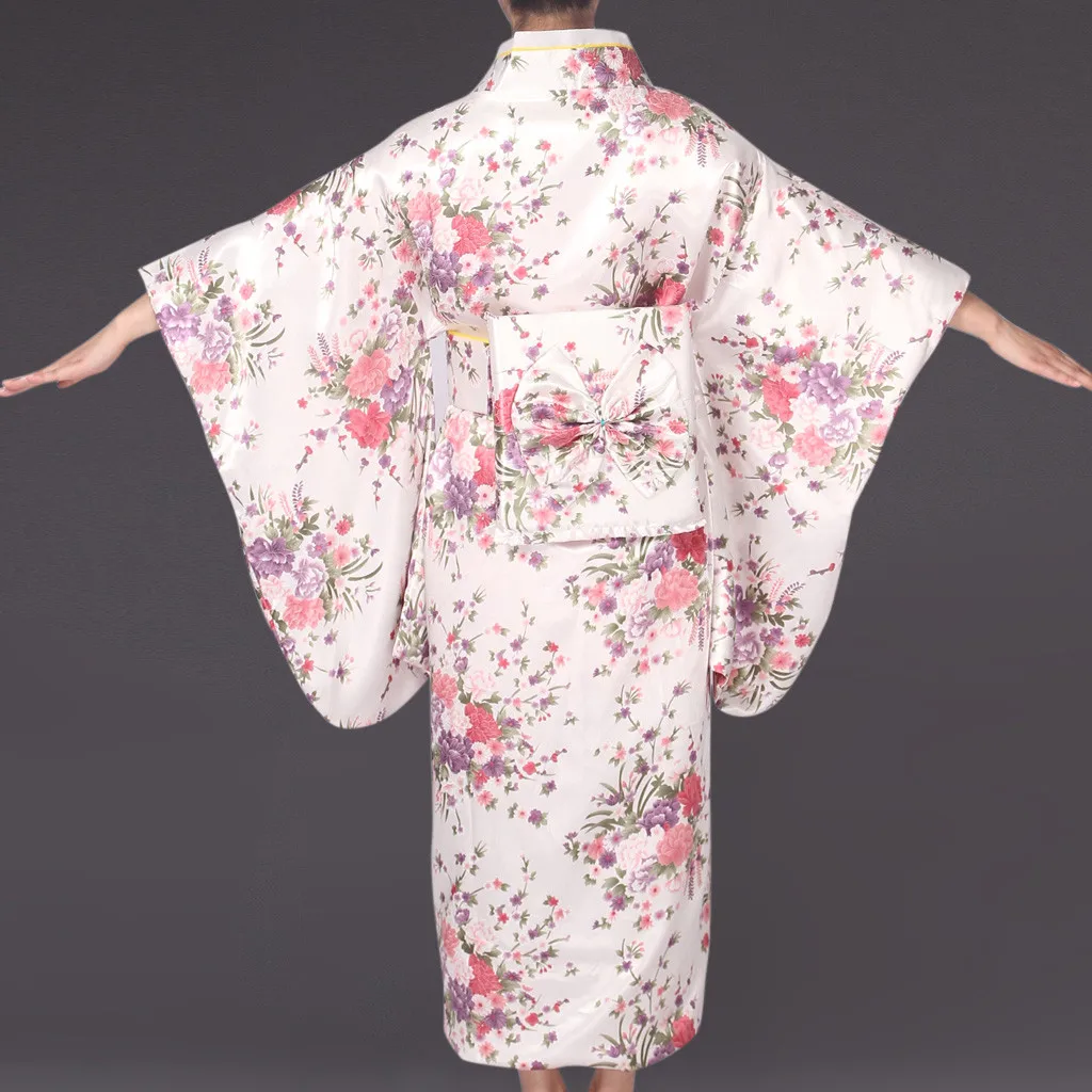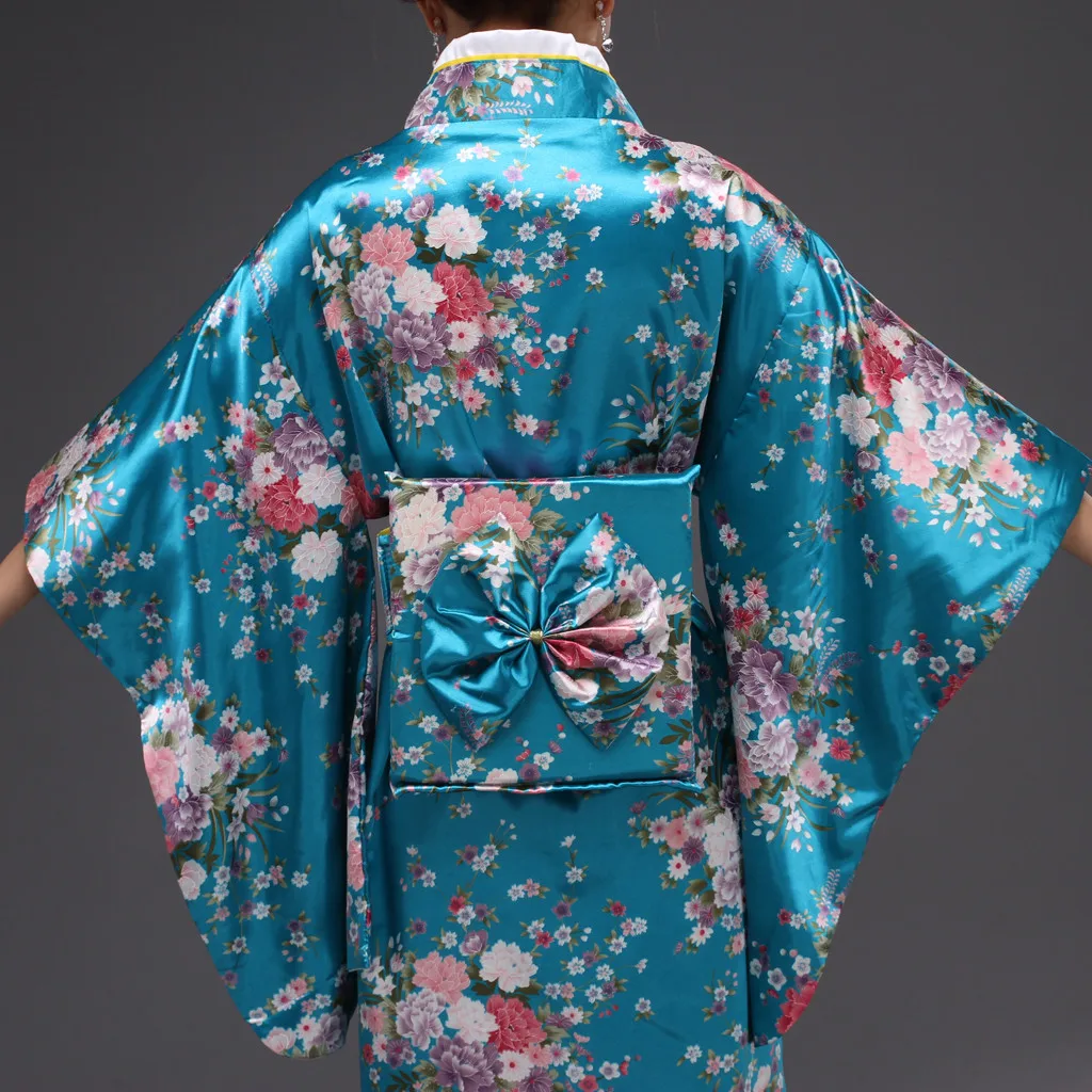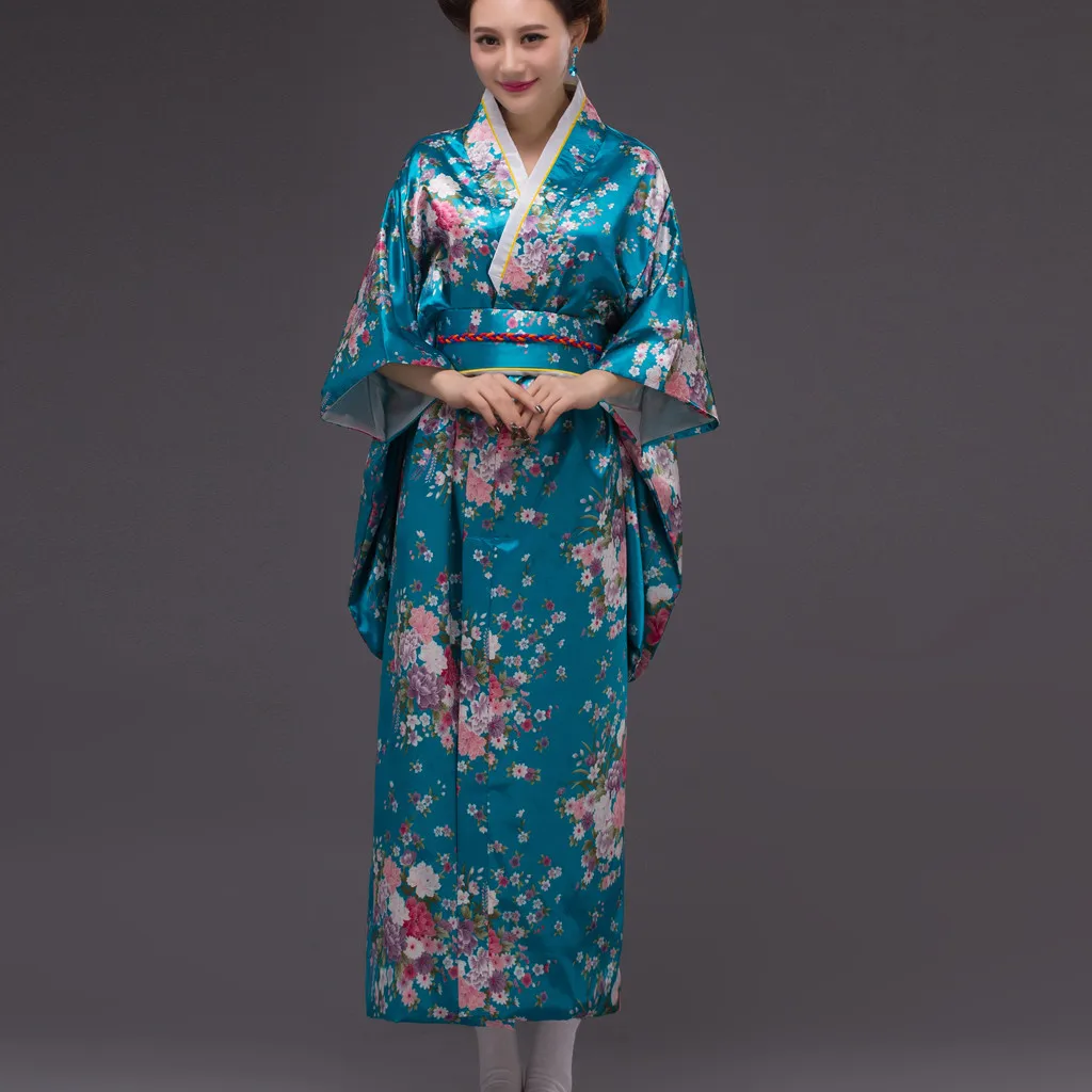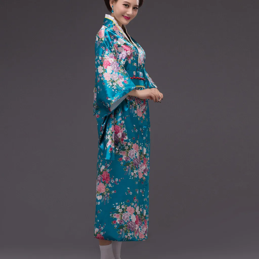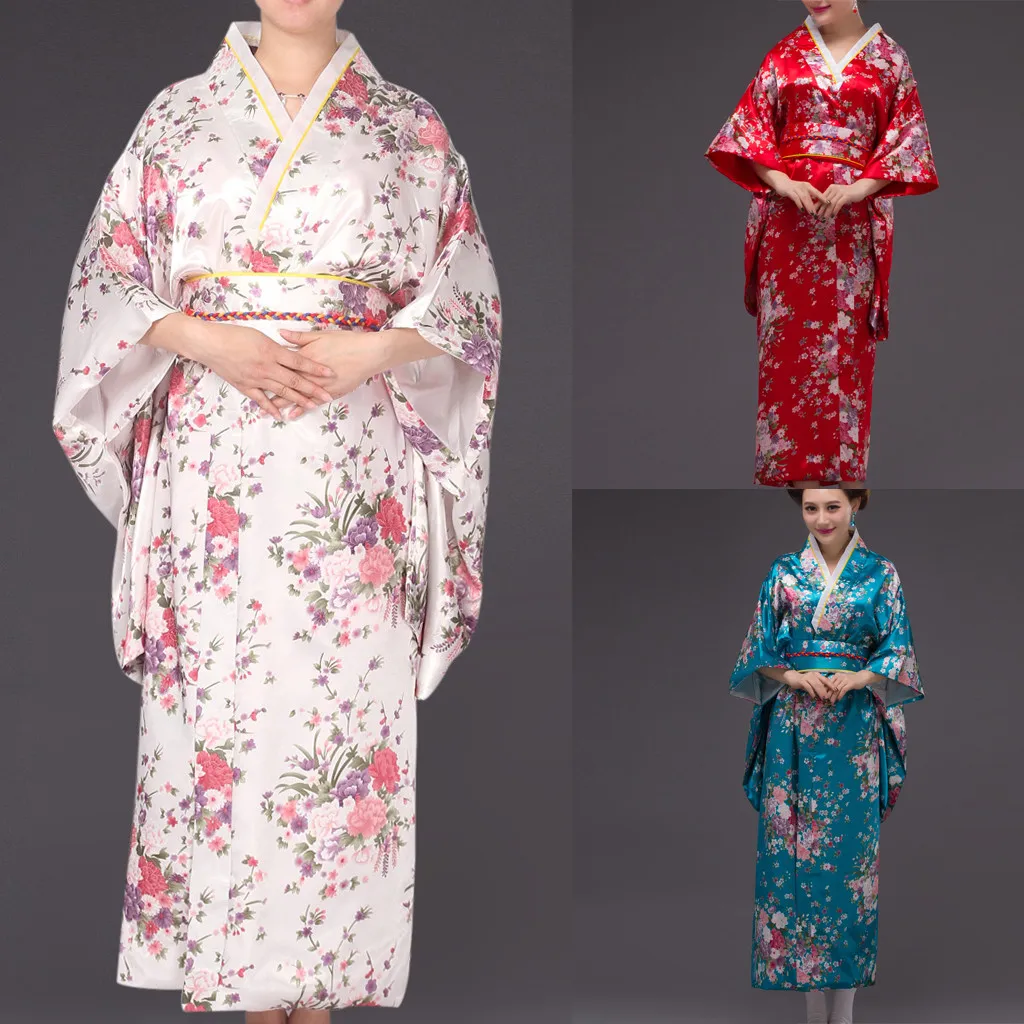 Имитация шелка кимоно с длинным рукавом женский красный халат с принтом