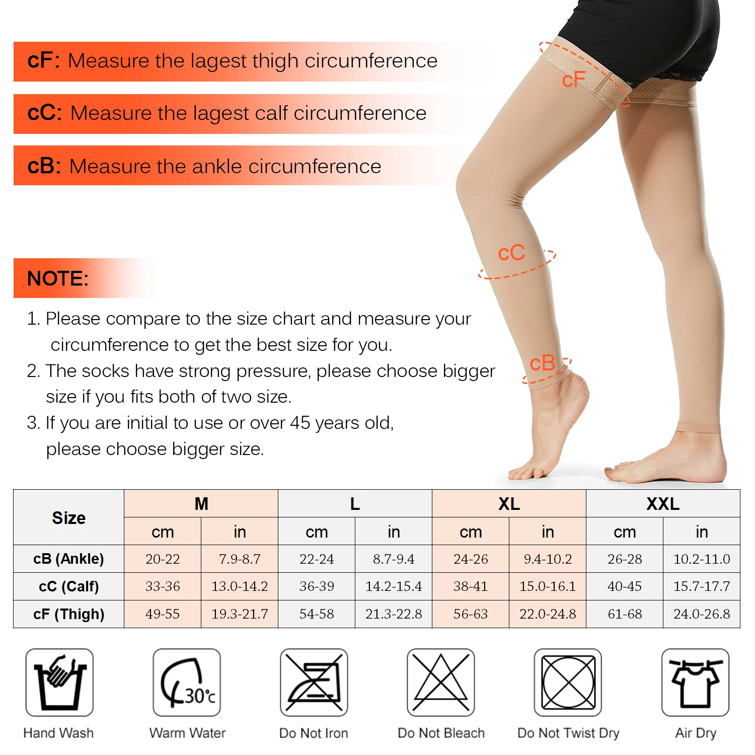 20-30 мм рт. Ст. Градуированные компрессионные носки: они обеспечивают градуированное сжатие от лодыжки до верхней части бедра. Носки растягиваются на 360 градусов для большей гибкости.