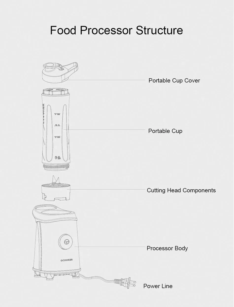 Основные характеристики: * Чашка питания двойного назначения, 8 секунд, чтобы выйти из сока. * Тройная конструкция блокировки-это быстрая, легко носить с собой. * Предпочтительно утолщать катушка из чистой меди, материал твердый, достаточно мощности, скорость вращения, до 24000 об/мин. * Экономьте время и усилия, смывая остатки сока одним ударом Этот продукт имеет напряжение 220 В, он не поддерживает Соединенные Штаты/Канаду/Японию. Спецификация: -Бренд: Xiaomi QCOOKER -Модель: CD-BL01 -Напряжение: 220 В, 50 Гц -Номинальная мощность: 250 Вт -Емкость: 600 мл/300 мл -Вес: 1500 г -Поворот: 25000/мин -Вес продукта: 1,500 кг -Вес посылка: 1,800 кг -Размер посылка (Д x Ш x В): 22,3x15,8x25 см/8,6x6x9,8 дюймов Посылка: 1 блендер 1 x лезвие 1x600 мл чашка 1x300 мл чашка 1 x Руководство пользователя
