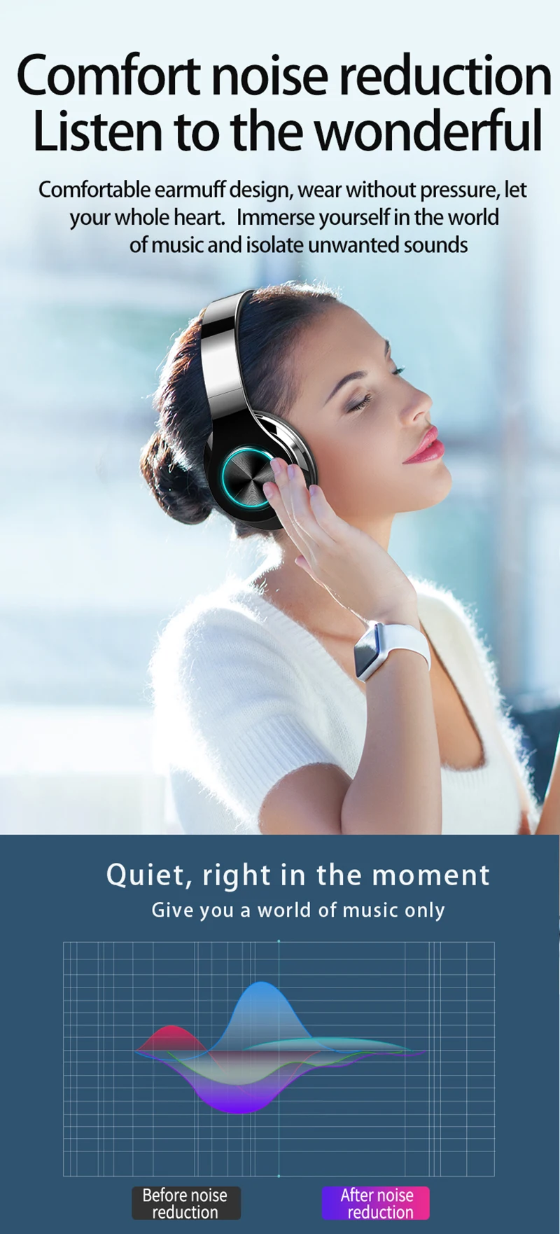 Беспроводные наушники с шумоподавлением, Bluetooth наушники Hi-Fi, глубокий бас, портативные стерео гарнитуры для мобильных телефонов, путешествий