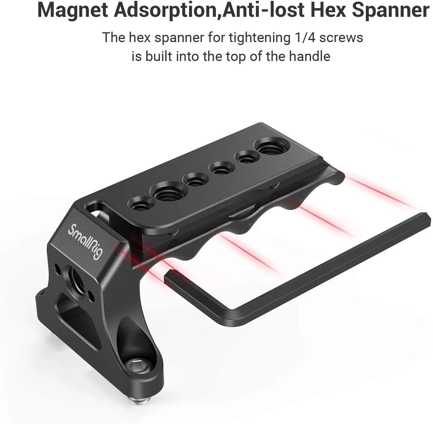 This Top Handle allows different mounting options for cinematic cameras. It is ergonomically shaped for a comfortable shooting experience and a fast accessible hex spanner tool is integrated to the side. Furthermore the Arri Lock on the front of the handle offers the opportunity to mount different types of monitors and other additional gear closely to the camera.The grip is threaded with 1/4" and 3/8" wholes. Its size fits perfectly for small and mid sized rig in order to keep the setup compact for Run & Gun shootings. It also can be used while operating with steadycams and gimbals.