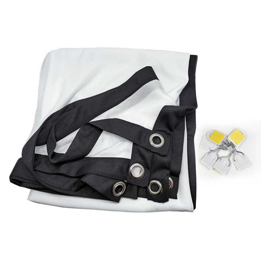 Экран проектора складной и портативный, легко повесить с крючками. Он приносит хороший эффект проекции для фильмов, встреч, выставки и т. д. различные размеры экрана и соотношение сторон для вас на выбор.
