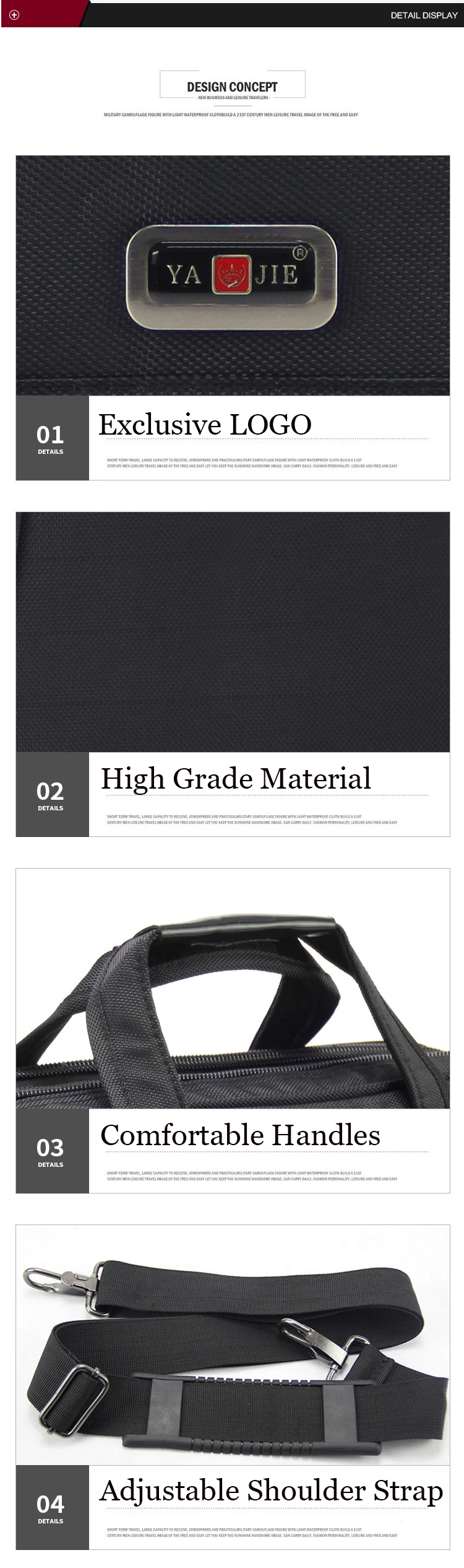 Размер: 39,5*30*16 см Ткань: ткань оксфорд Назначение: работа/путешествия/встречи Вес: около 1,1 кг Конструкция: основной карман, многофункциональный композитный карман, карман для ноутбука Емкость:15-дюймовые компьютеры, журналы A4, папки, книги, мобильный телефон, кошелек Плечевой ремень: регулируется до 150 см