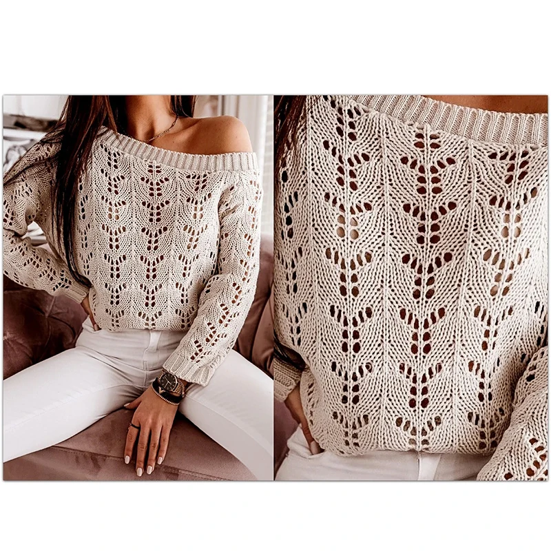 Женский Осенний модный свитер на одно плечо с длинным рукавом, с лазерным вырезом, элегантный вязаный свитер, пуловер, повседневная одежда