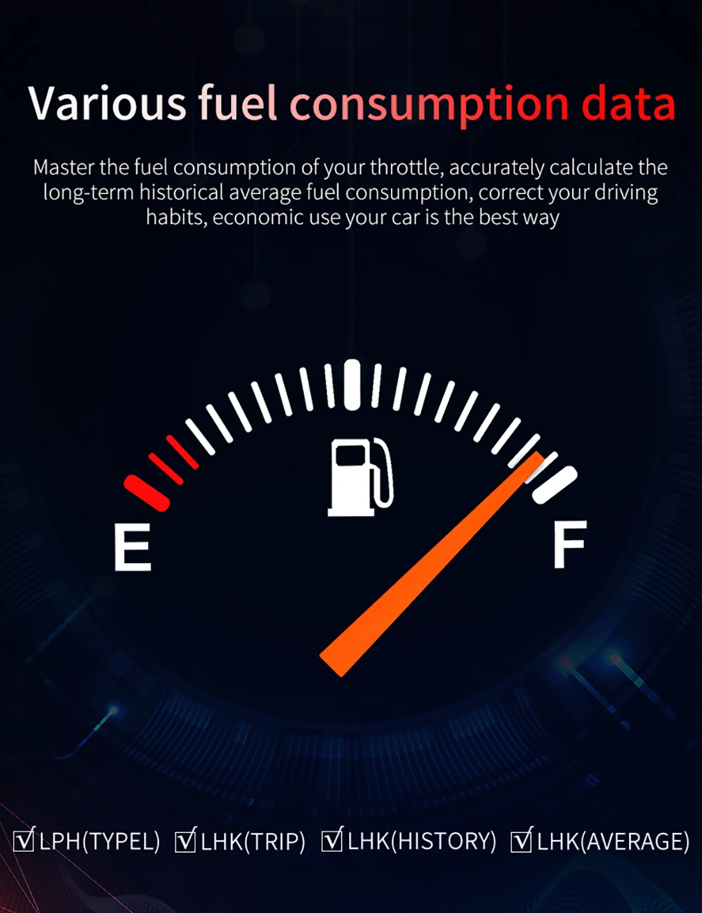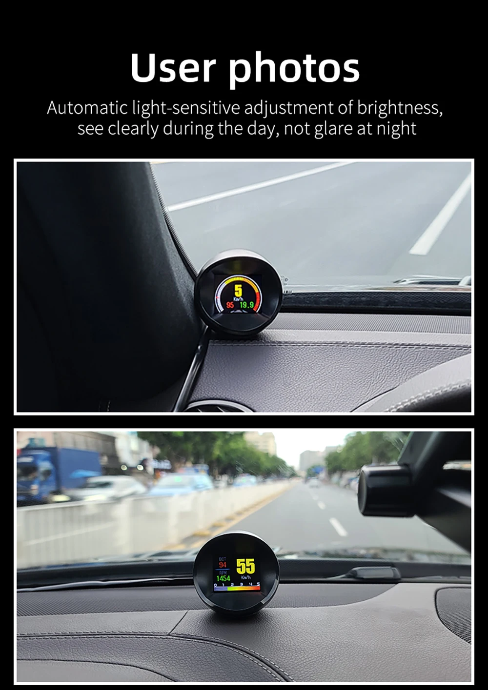 4. Первый HUD показывает все данные двойного режима OBD + GPS, нет необходимости переключать рабочую систему, если протокол OBD2 совместим.