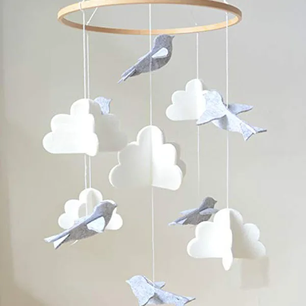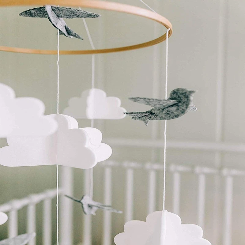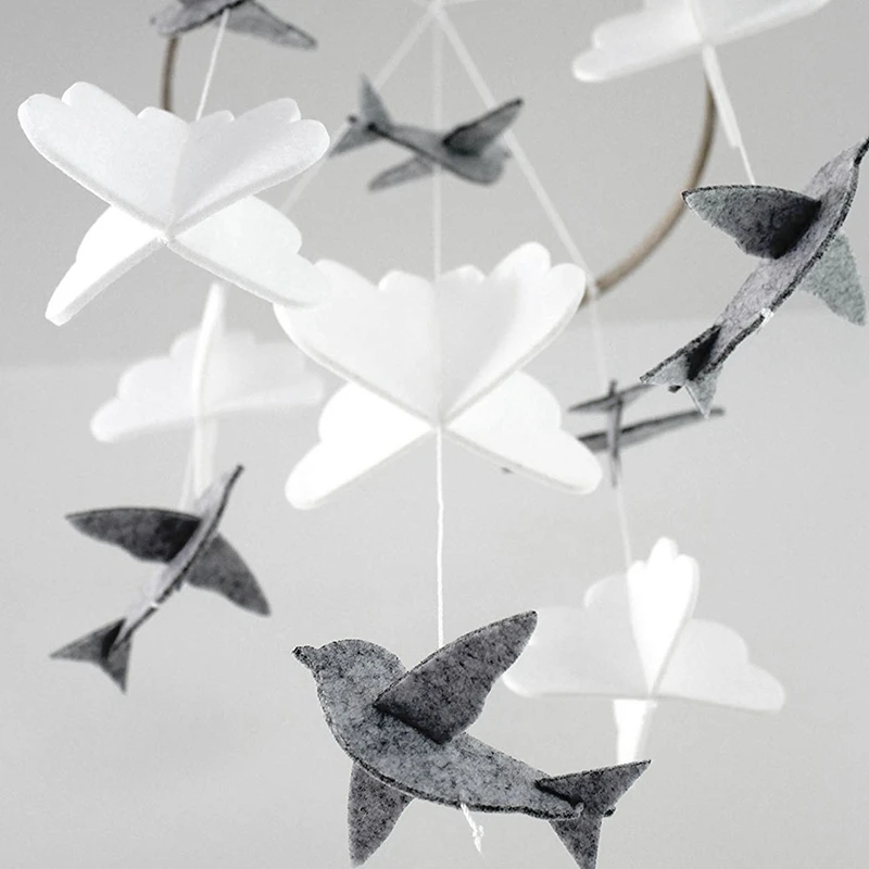 Детская кроватка для мобильных птиц и облаков, войлочные Детские потолочные украшения для девочек и мальчиков, серый и белый