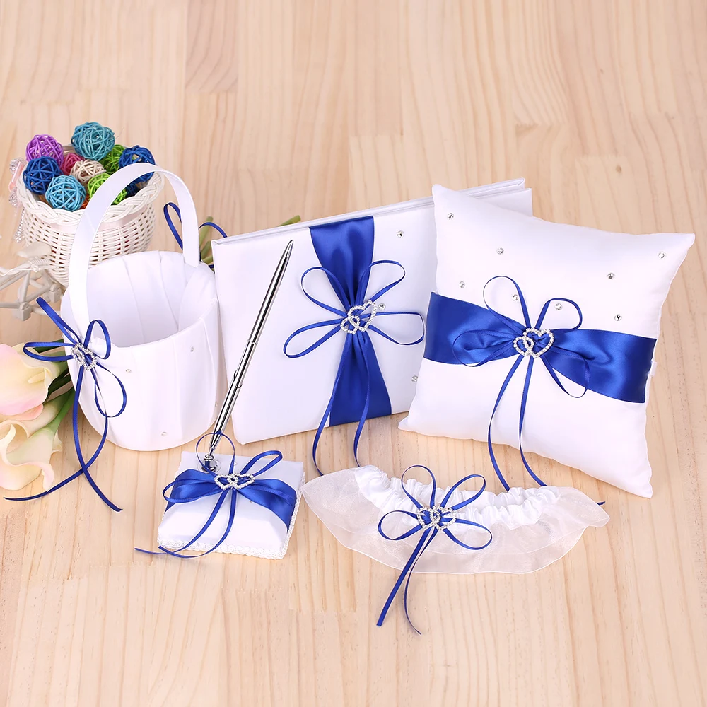 Цветочная корзина для девочек + 7*7 дюймов подушка для носителя колец + Гостевая книга + держатель для ручек + подвязка невесты.
