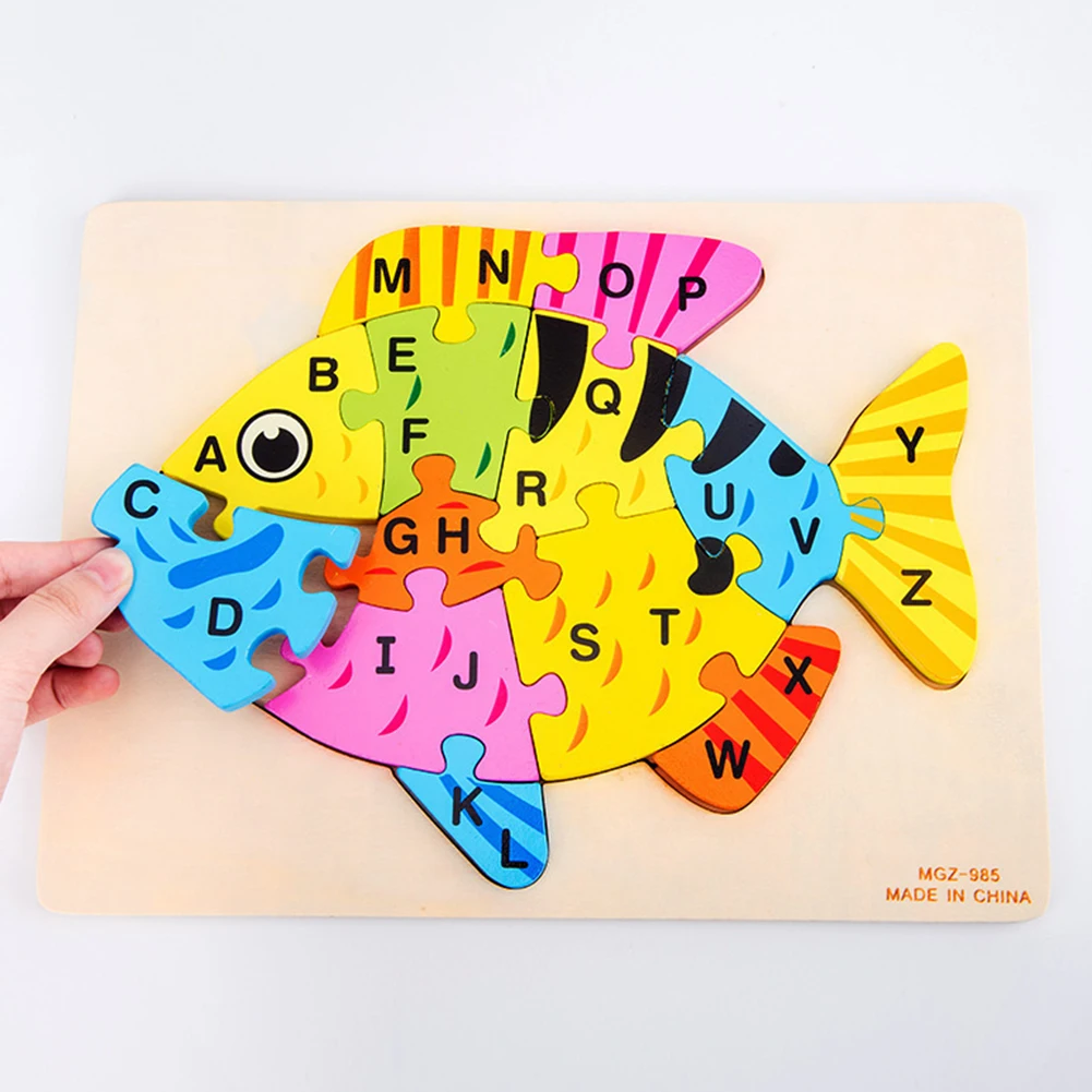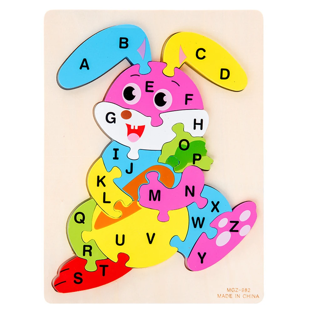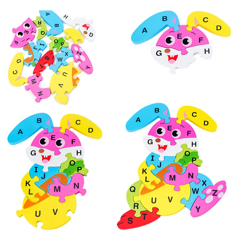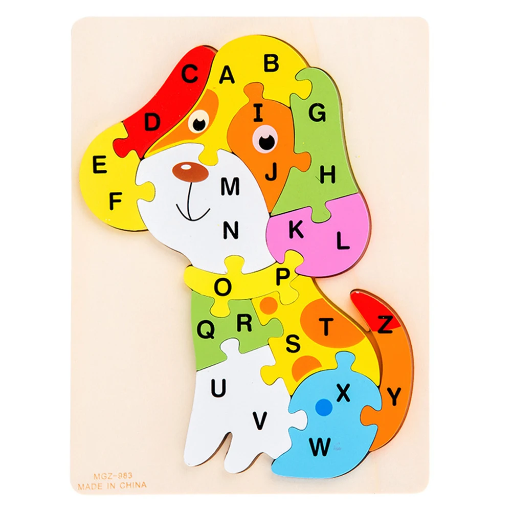 Деревянные животные Лошадь Кролик Собака буквы головоломки блок Дети Малыш игрушка