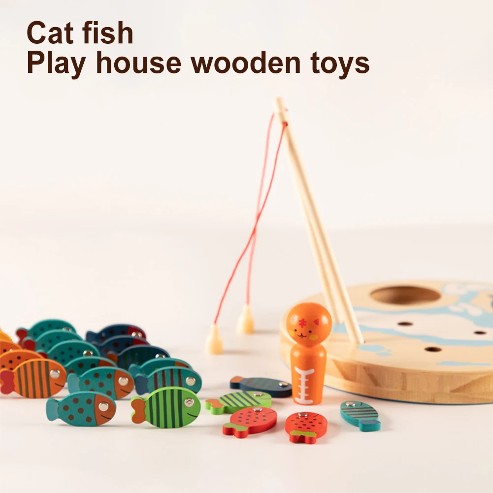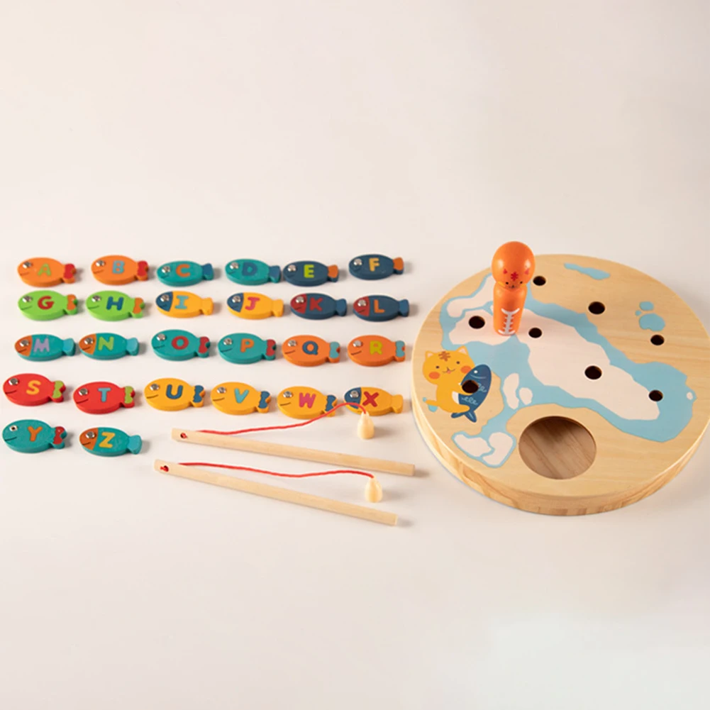Деревянные магнитные буквы рыбы блоки кошка рыболовная доска игра малыш детская игрушка