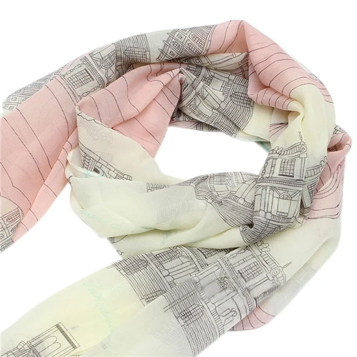 Этот женский длинный шарф изготовлен из мягкой и прозрачной вуали с принтом башни, который подарит вам комфортные ощущения и модный образ весной, осенью и зимой.