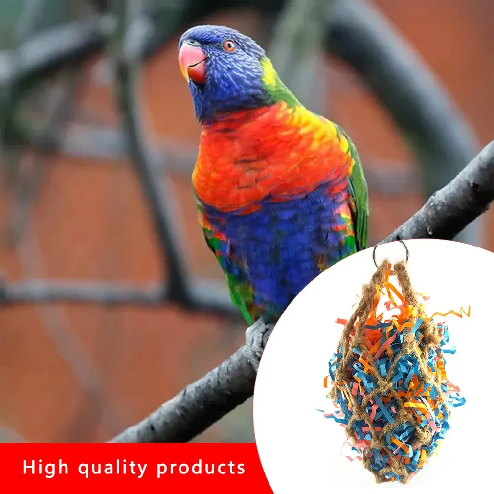 Особенности: 1. Изготовлен из натурального джута и бумаги, который безопасен для жевания, нетоксичный, санитарный. Описание: 1. Эта игрушка набита Яркой Цветной чернильной бумагой, он будет Характеристики: Размер: 21 см/9 дюймов Посылка включает в себя: 1 х игрушечная птица