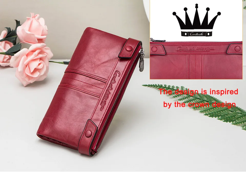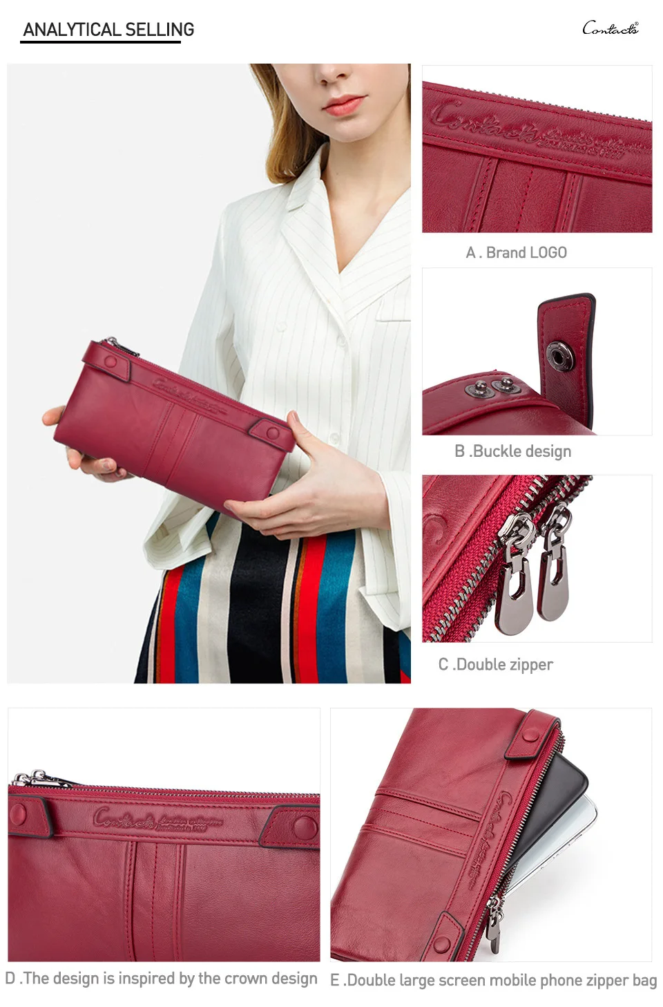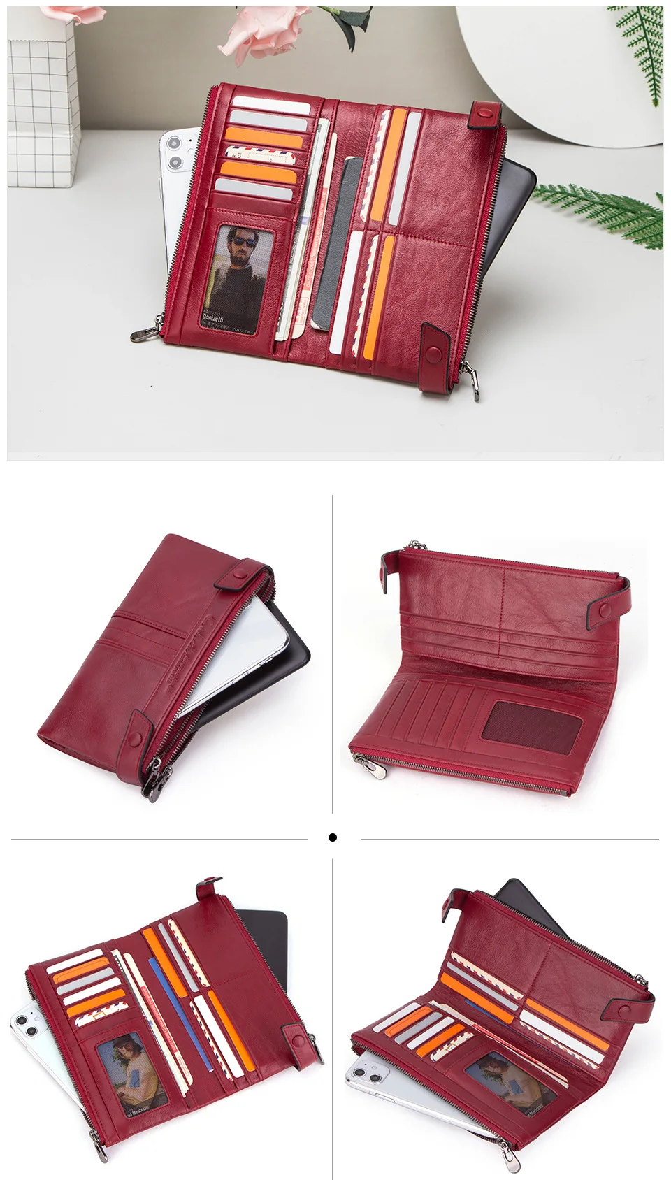 Модный женский кошелек из натуральной кожи, на молнии, из воловьей кожи, с Rfid отделением для карт, кошельки для женщин, женский кошелек с застежкой, клатч для телефона