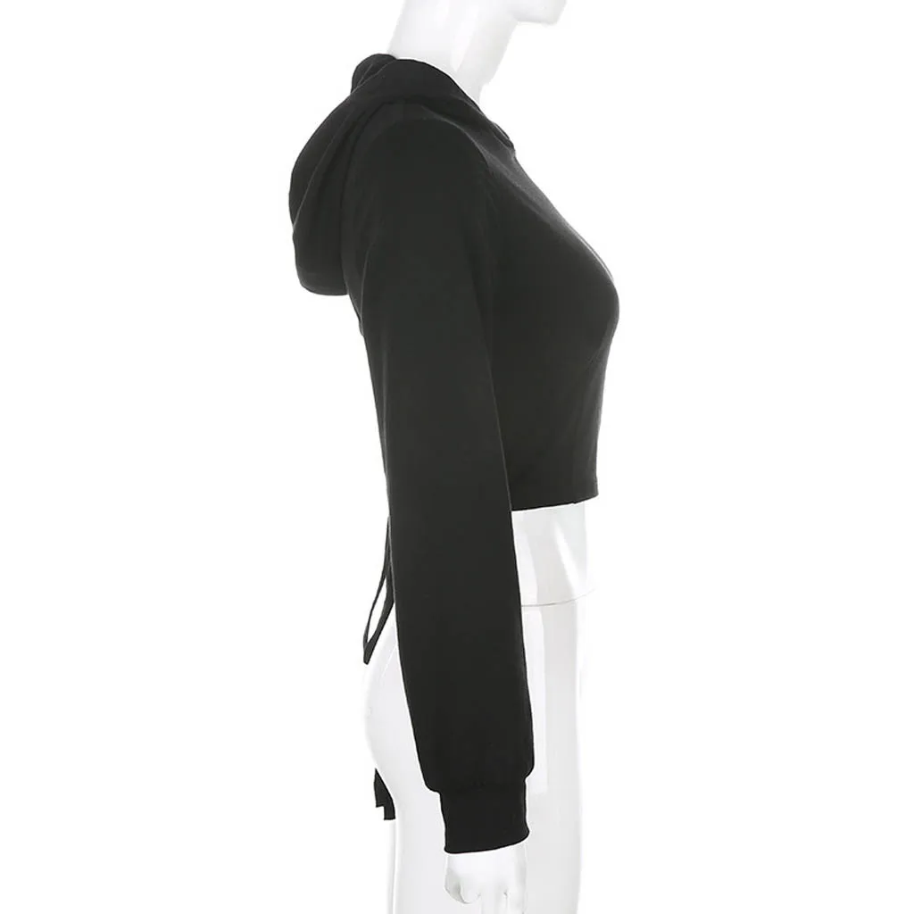 Женский сексуальный укороченный топ с капюшоном и завязками на спине