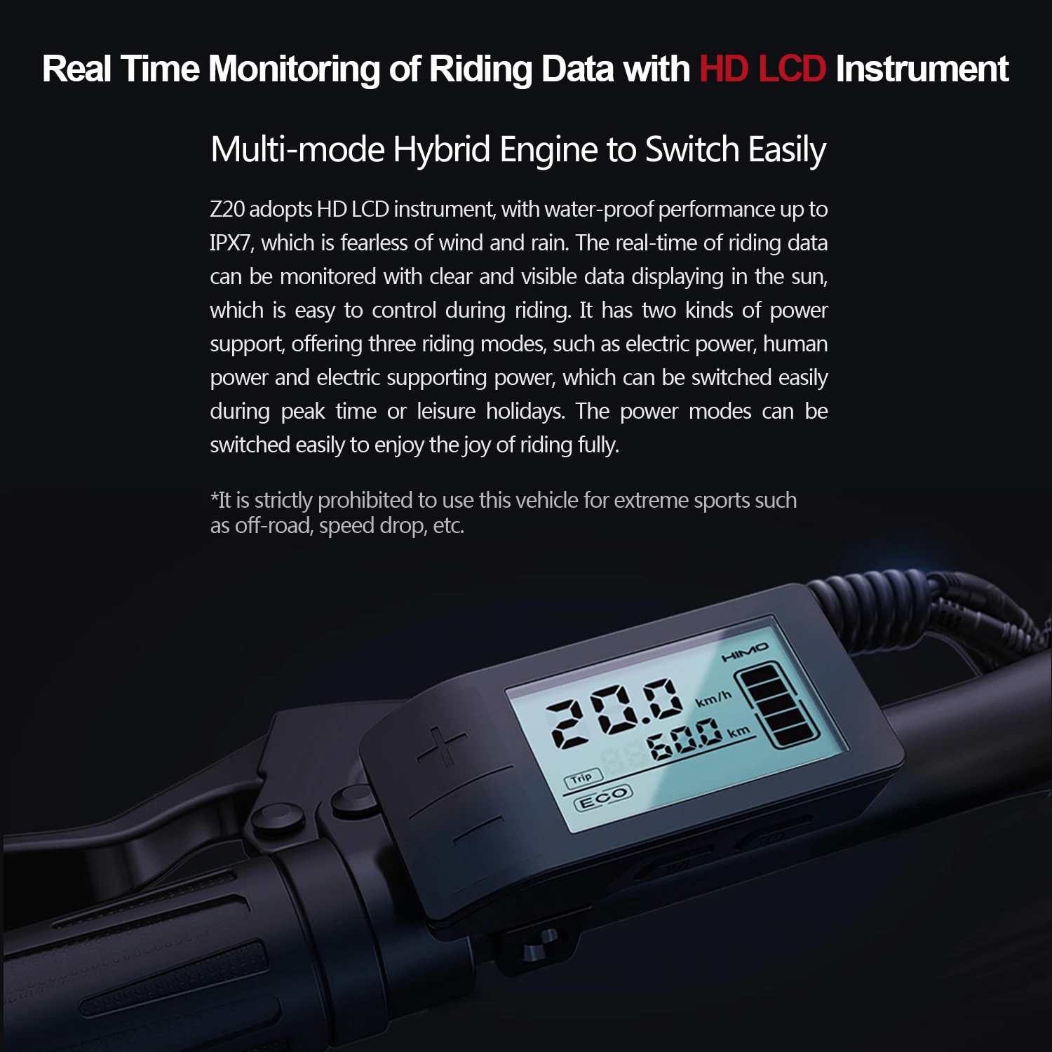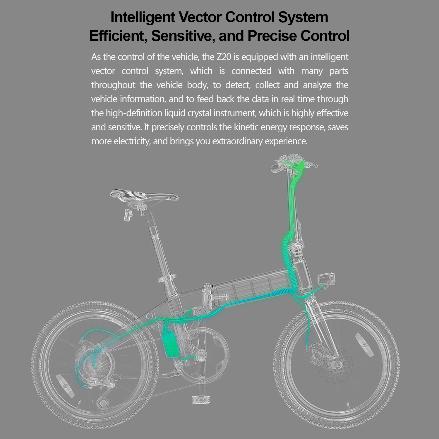 Интеллектуальная векторная система управления отслеживает информацию о велосипеде и отображает данные на ЖК-дисплее, включая состояние батареи, расстояние поездки, скорость езды, режим езды и т. Д.