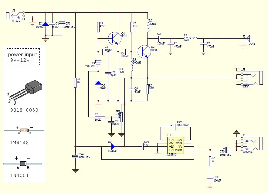 Частотный диапазон: передатчик частота локального осциллятора: 7023 кГц; Получение частоты локального осциллятора: около 7023-7026 кГц