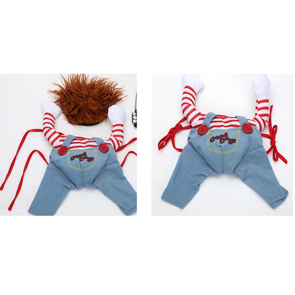 Стиль: Хэллоуин Материал: полиэстер Сезоны: Весна, Осень, Зима, Лето Цвет: красный и синий Костюмы для собак на Хэллоуин, забавная одежда для домашних животных, регулируемые комплекты костюмов для собак, новинка, одежда для средних и больших собак, бульдог, мопс Посылка включает в себя: 1 предмет одежды (регулируется). 1 парик (регулируемый), 1 пенопластовый нож