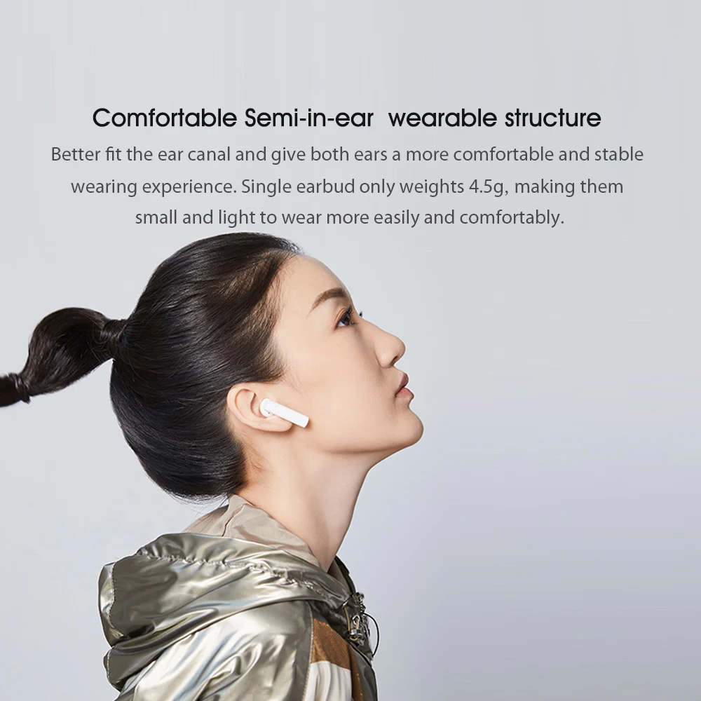 Беспроводные стереонаушники Xiaomi True Air 2S имеют полупроводниковую носимую структуру, чтобы лучше соответствовать слуховому каналу и дать обоим ушам более комфортное и стабильное ношение. Один наушник весит только 4,5 г, что делает их маленький и светильник для того, чтобы носить более легко и удобно.