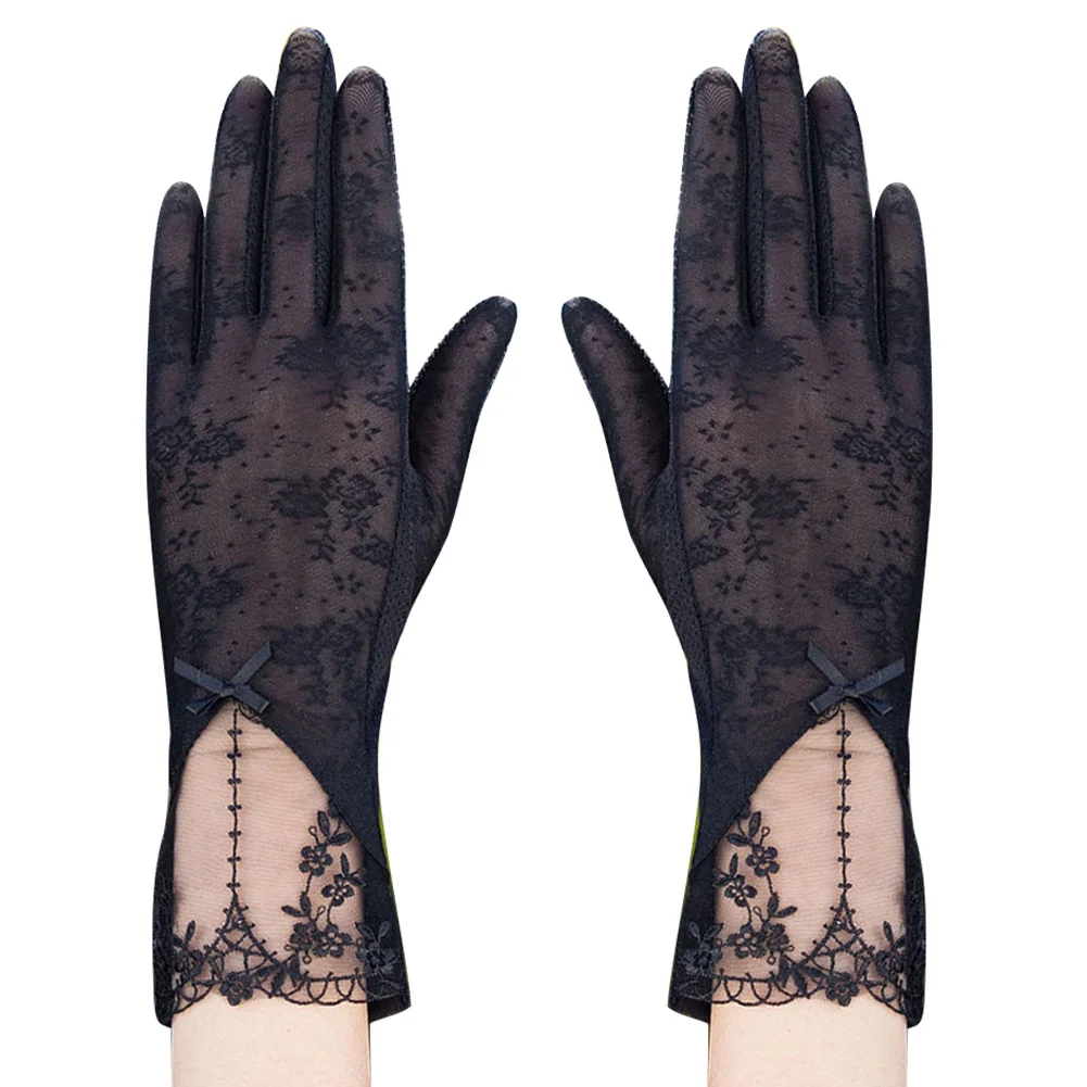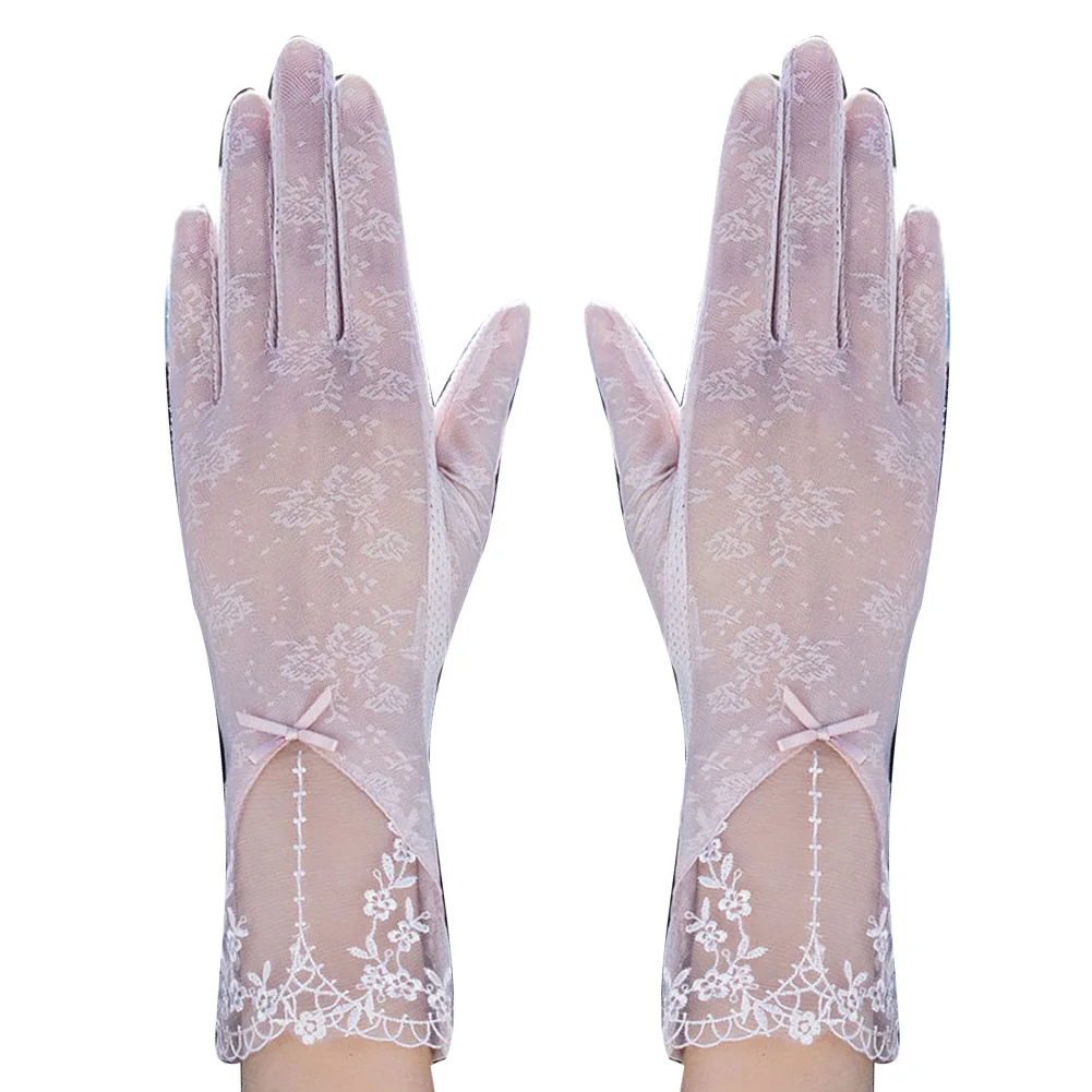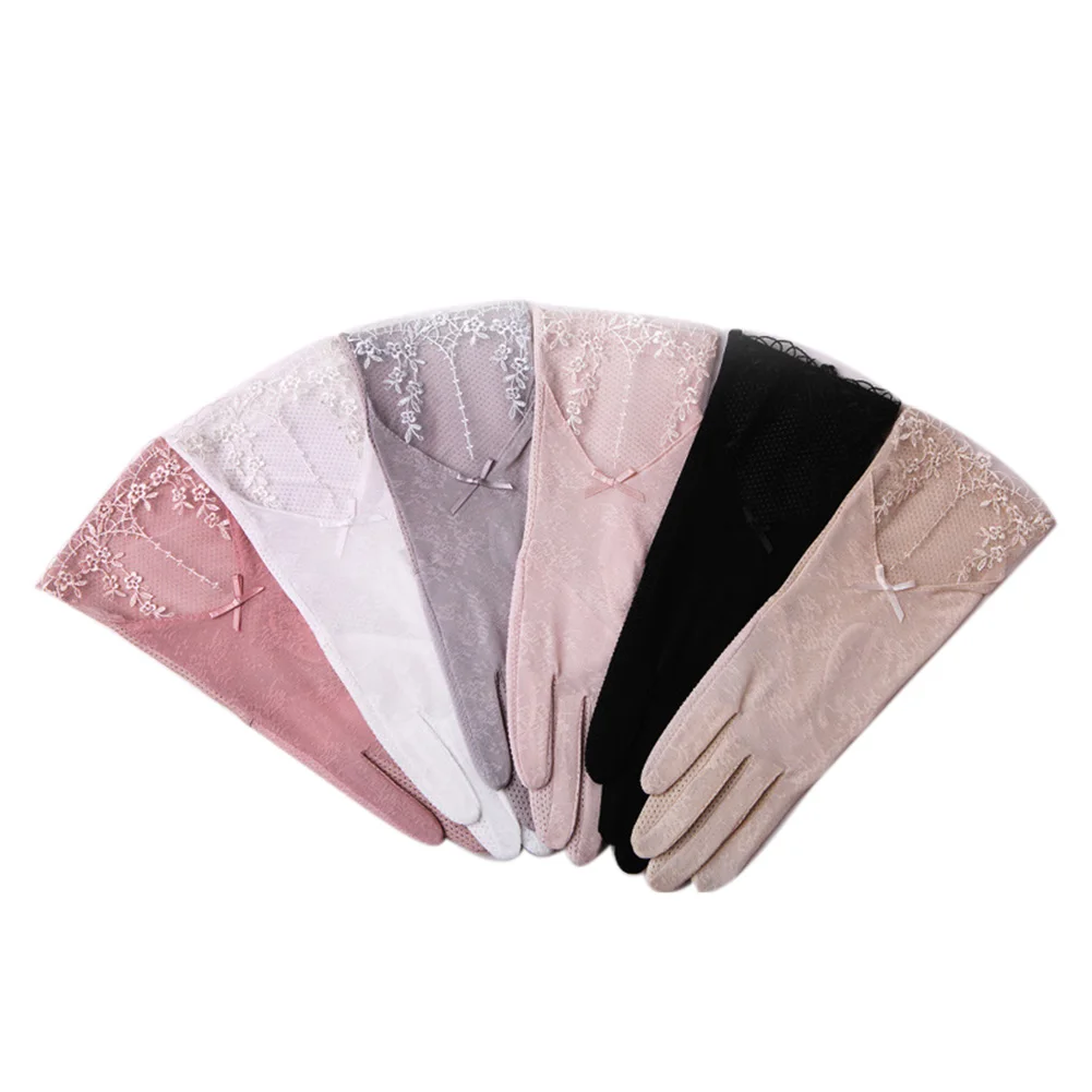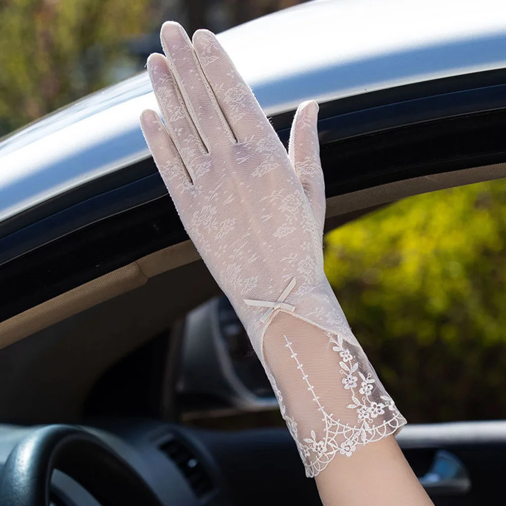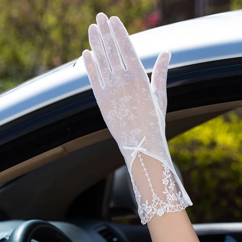 Женские прозрачные цветочные кружевные тонкие противоуф-перчатки для вождения с сенсорным экраном