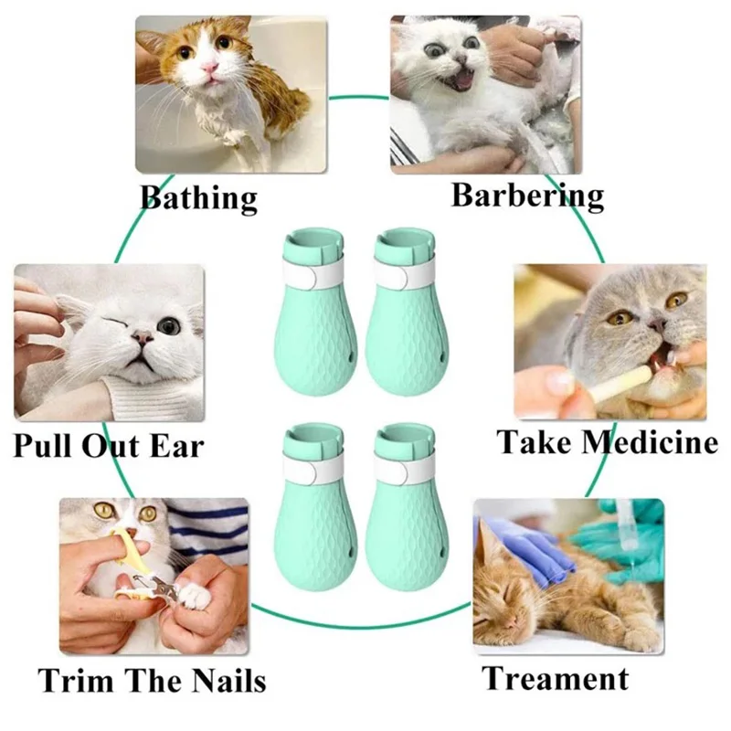4 шт., защита для мытья лап кошки для ванной, мягкая Регулируемая силиконовая антицарапная обувь, кошачья лапа, чехол для ухода за кошками, товары для домашних животных
