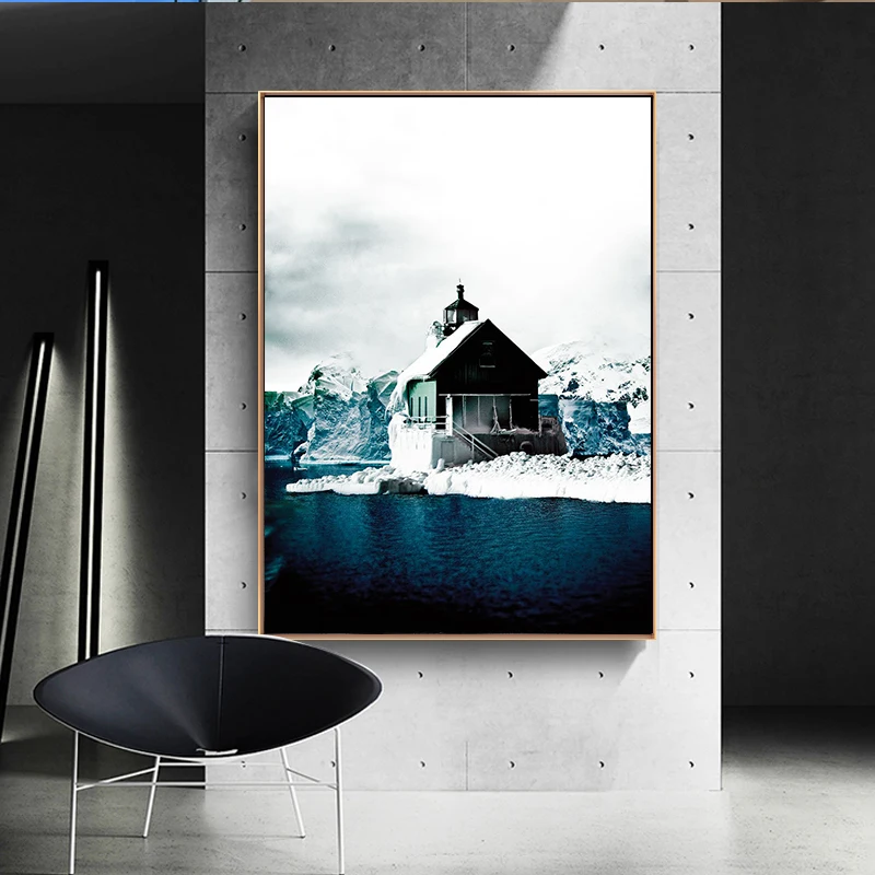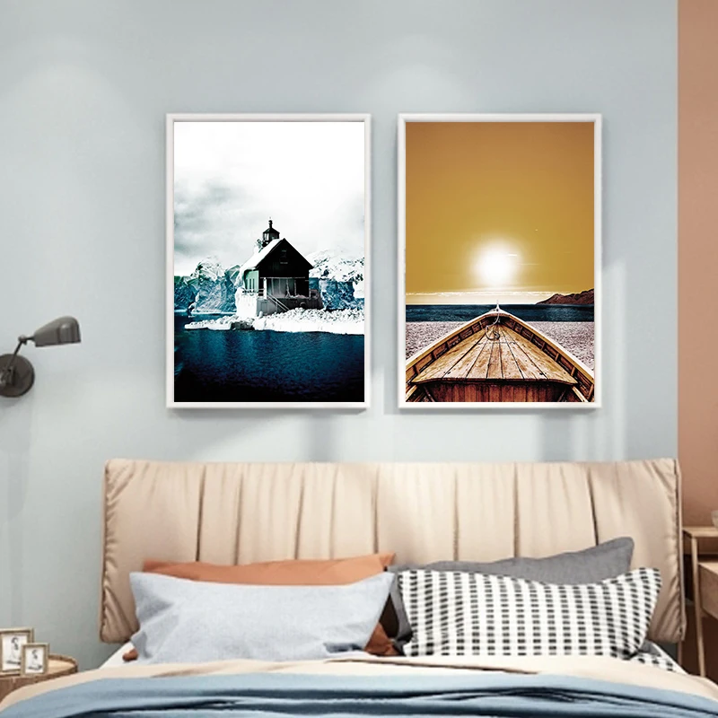 Картина на холсте для гостиной HD Золотая лодка и закат дом в снегу картина светильник роскошный пейзаж творчество постер прикроватный художественное украшение картина на стене