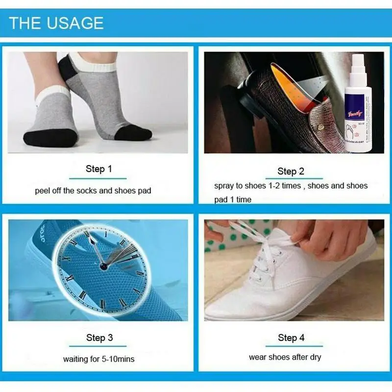 Распыляйте ноги, обувь и прорези между пальцами ног один раз в день утром за 10-15 секунд до ношения обуви.