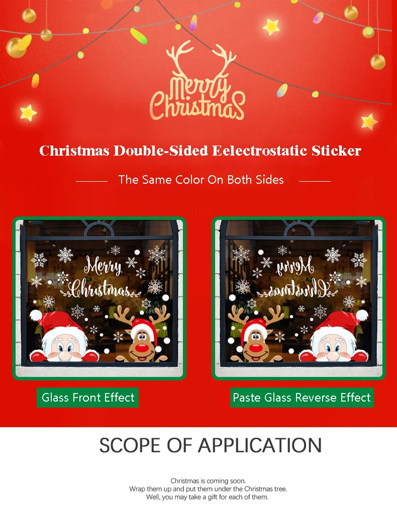 Новогодние наклейки на окно виниловые рождественские украшения 2021 эстетика гостиной для дома дизайн комнаты нанесение наклейки на стену