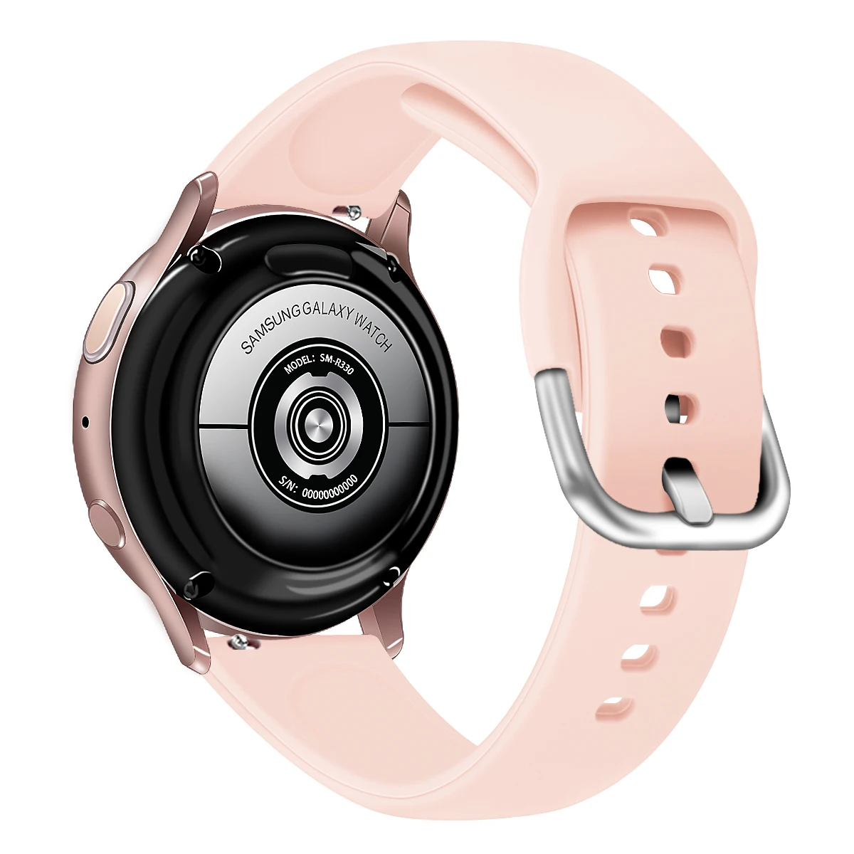 ★Моющийся в воде Мягкий силикон: легко мыть с помощью воды, когда он грязный, кажется новым. Изготовлен из высококачественного силикона с пряжкой из нержавеющей стали 316L. Обработанная нижняя часть очень мягкая против кожи и минимизирует скольжение, обеспечивая идеальный комфорт. Трудно ощущать нагрузку на часы во время занятий спортом ★Полос Широкая совместимость с: идеально подходит для Samsung Galaxy Watch 3 45 мм 2020/Samsung Watch3 41 мм 2020/Watch 42 мм и Galaxy Watch Active 40 мм/Active 2 40 мм 44 мм/Gear Sport / Gear S2 Classic, moto 360 2nd Gen 42 мм, Ticwatch 2, Garmin Vivomove HR / Vivomove / Vivoactive 3 / Forerunner 645 / 245 /,Suunto 3 Fitness, Ticwatch E, Huawei Watch GT 42 мм, gizmo сменный ремешок для часов 20 мм и другие умные часы шириной 20 мм с наконечниками. Пожалуйста, проверьте модель часов перед покупкой ★Удобный материал: Изготовлен из высококачественного кремниевого материала, благоприятного для кожи. Гибкий и прочный, очень удобный и мягкий, чтобы носить на запястье, делает его идеальным украшением для ваших Galaxy наручных лент от спорта до работы ★Подходит Размеры: маленький Размеры подходит 5,5 "-7,1" запястья и 0,78 " (20 мм) полос по ширине. Подходит для женщин, мужчин, мальчиков и девочек в спорте, бизнесе, повседневной жизни, вечерние и т. Д. ★Простая установка и удаление: ремешок поставляется с наконечниками на двух концах, которые надежно и точно фиксируются на часах Samsung, легко крепятся и снимаются вручную без инструмента Посылка: Ремешок для наручных часов x1 Умные часы не включены