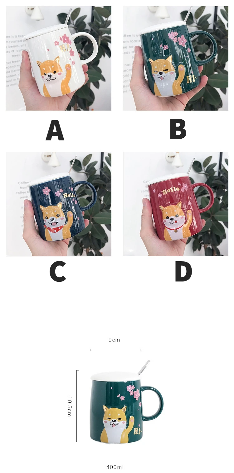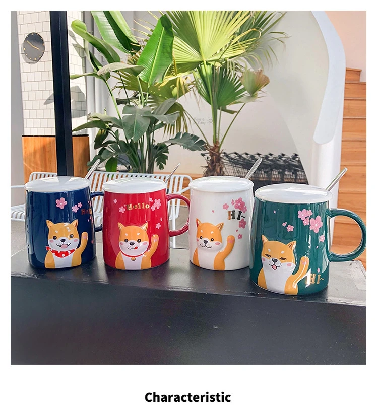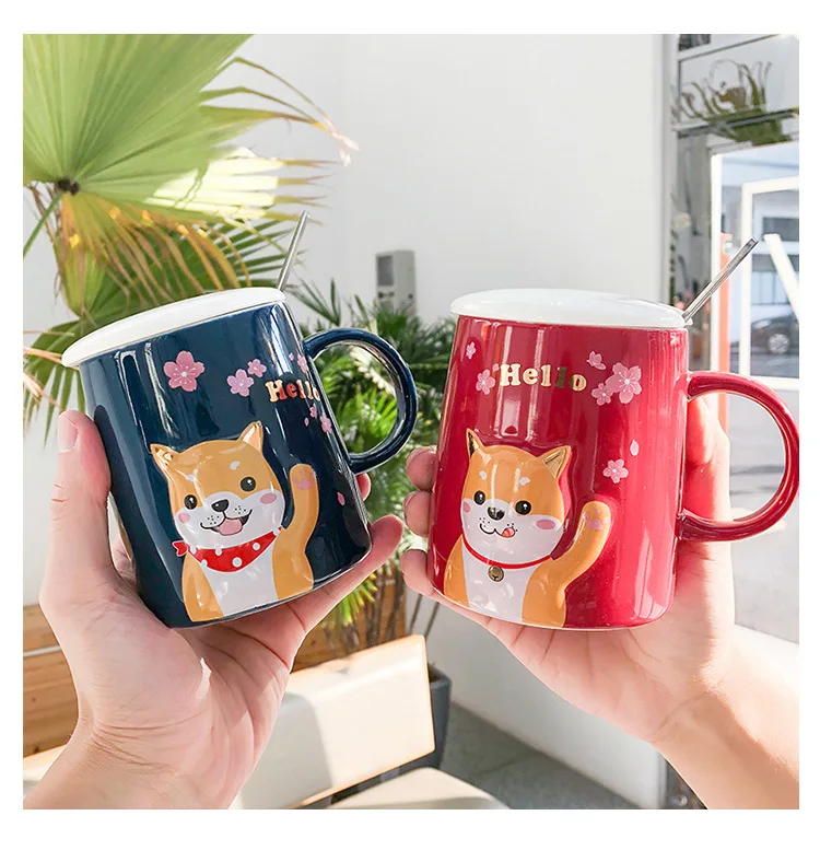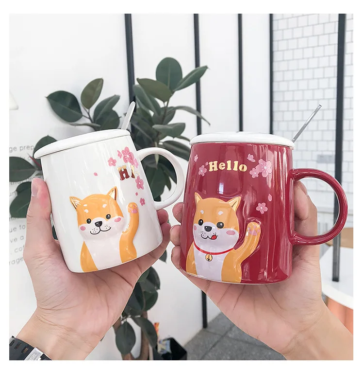 Креативная керамическая чашка с крышкой и ложкой, чашка для кофе с изображением щенка