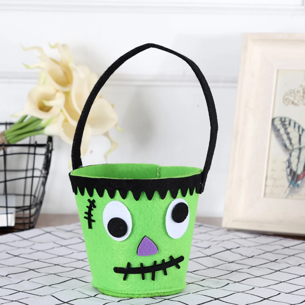 Мы предлагаем три цвета (желтый, зеленый и черный) Мини Войлок Хэллоуин конфеты ведро на ваш выбор.