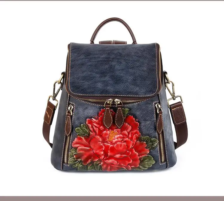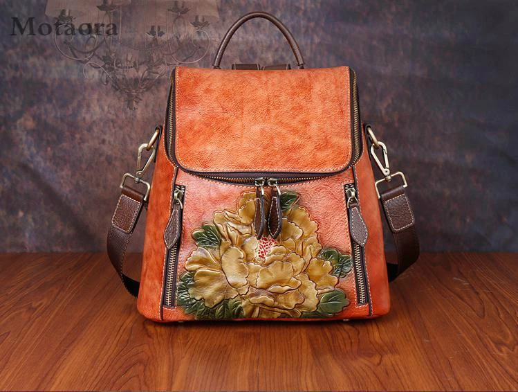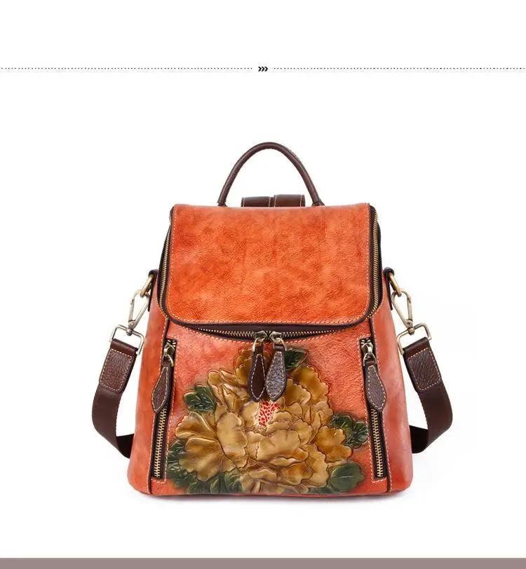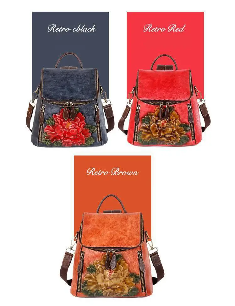 Высококачественные роскошные рюкзаки для женщин 2020 Новая мода Натуральная Воловья кожа женская сумка женский Ретро Цветочный рюкзак для путешествий