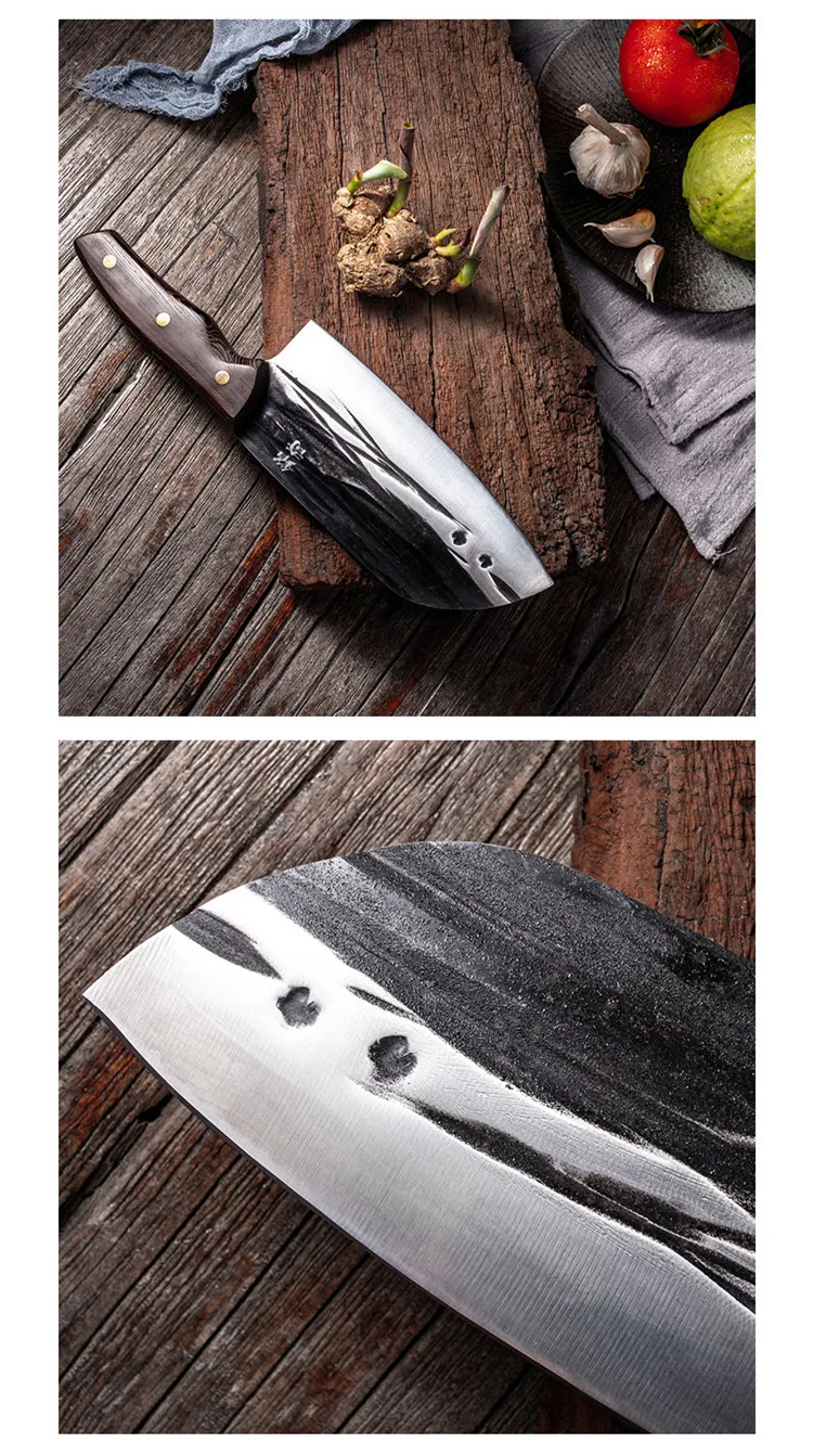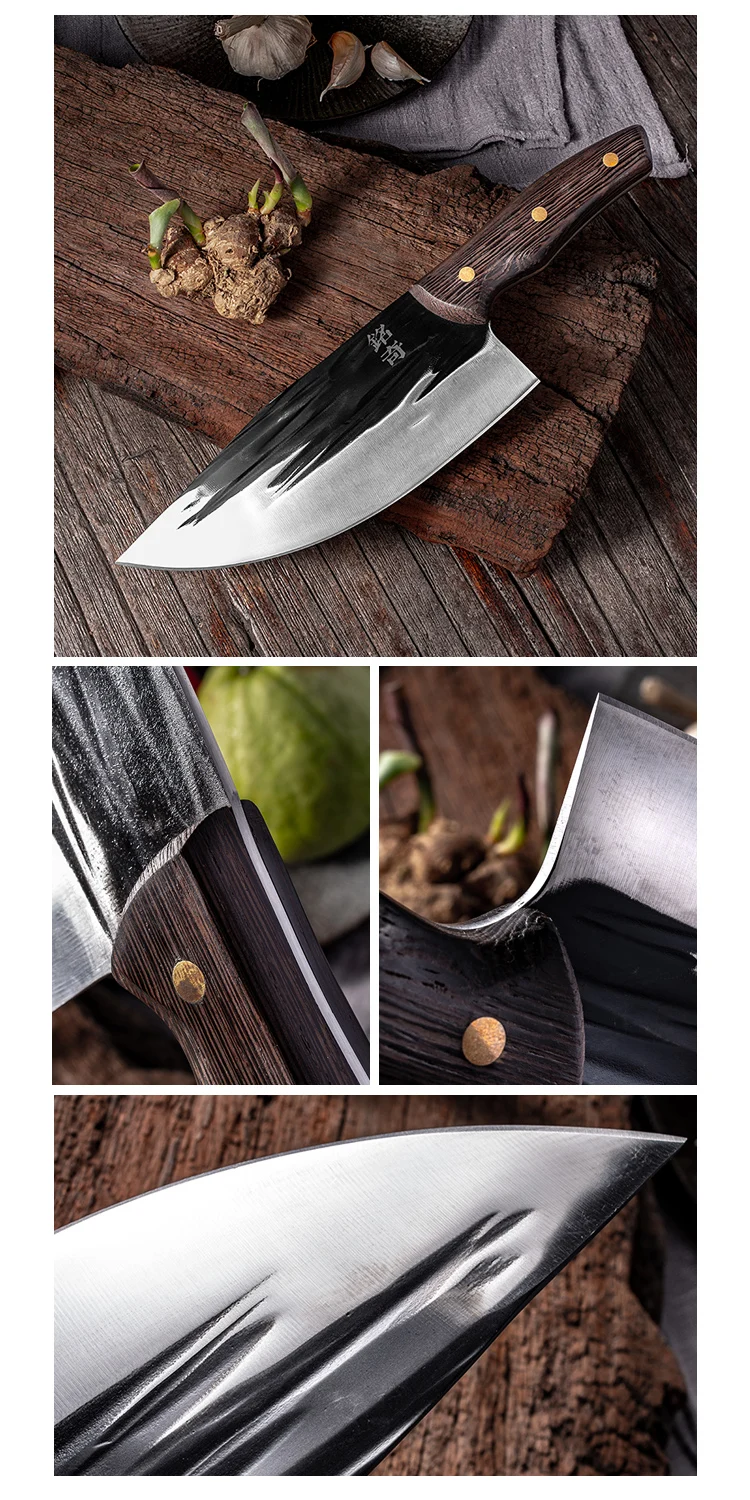 Нож изготовлен из нержавеющей стали 5Cr15Mov, традиционная технология ручной работы кованого ремесленника, влажная режущая кромка делает лезвие острым, долговечным, приятным стилем позволит вашей кухне.