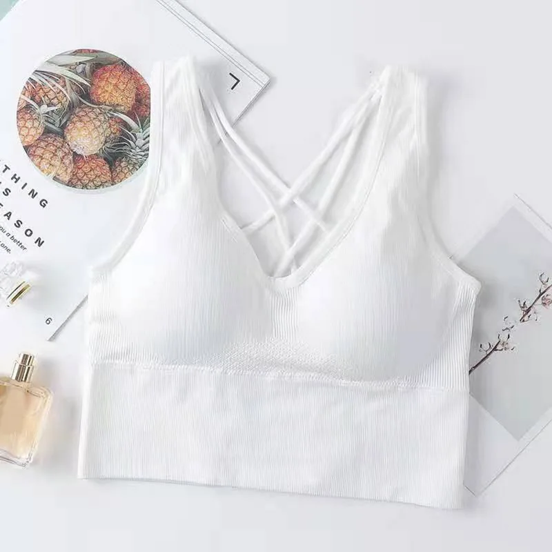 Женский спортивный бюстгальтер для фитнеса, нижнее белье с подкладкой, укороченные женские топы, пуш-ап, однотонный, с перекрестной спинкой, для занятий йогой, бега, тренажерного зала, тренировок.