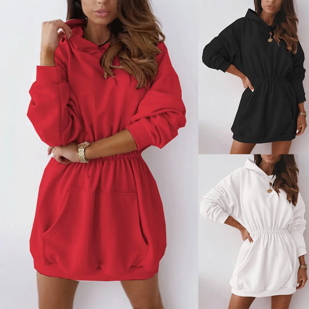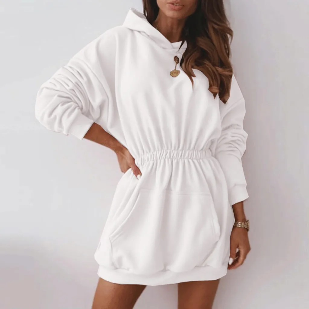 Женское плотное флисовое платье с круглым вырезом и длинными рукавами + пояс с капюшоном