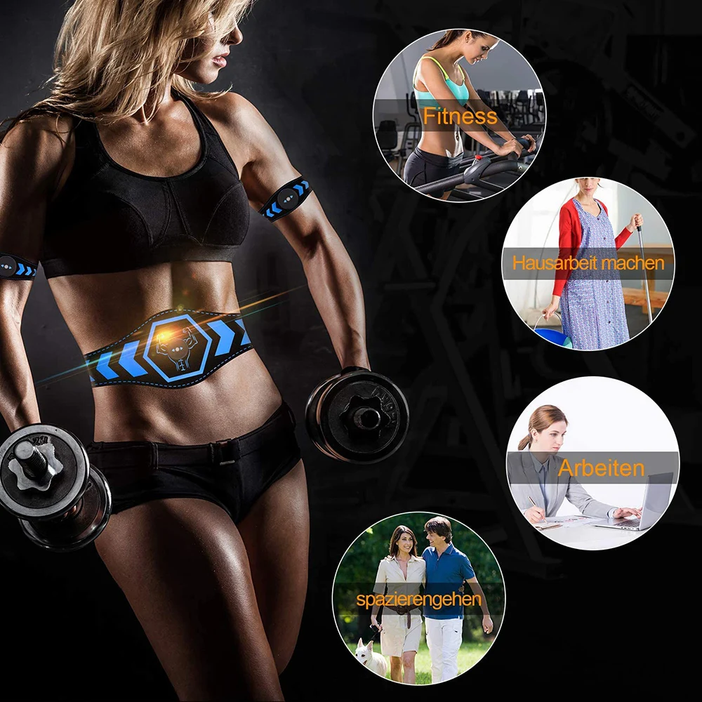 💪【 2020 новая технология EMS-новая технология EMS (электрическая стимуляция мышц) мягко стимулирует ваши мышцы, посылает импульсы непосредственно к мышцам и способствует мышечному движению. EMS тренажер поможет вам укрепление тела мышц и развивайте свои фигуру мечты. Вы получите лучшую фигуру тела после последовательного использования EMS стимулятора мышц около 3 месяцев.