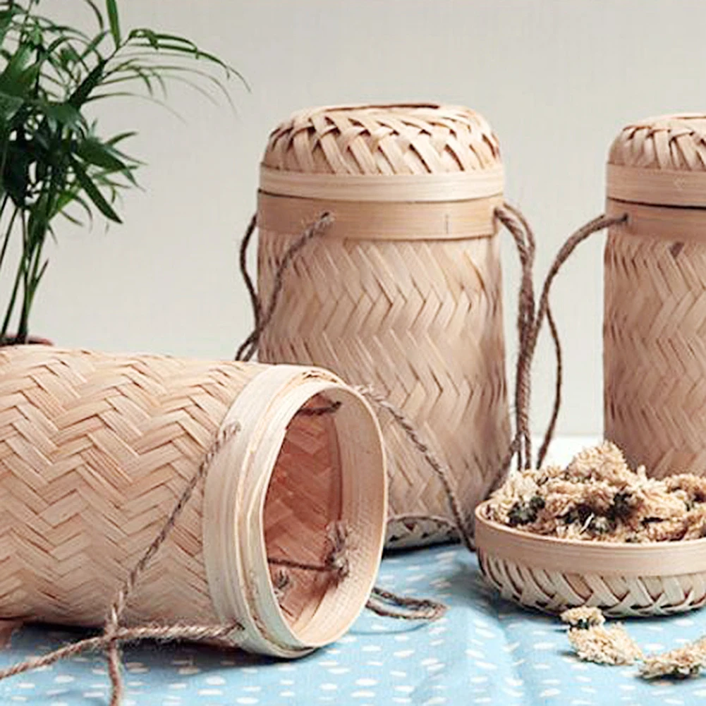 Ручная соломенная плетеная корзина для хранения с крышкой чайные листья закуска из ротанга Органайзер