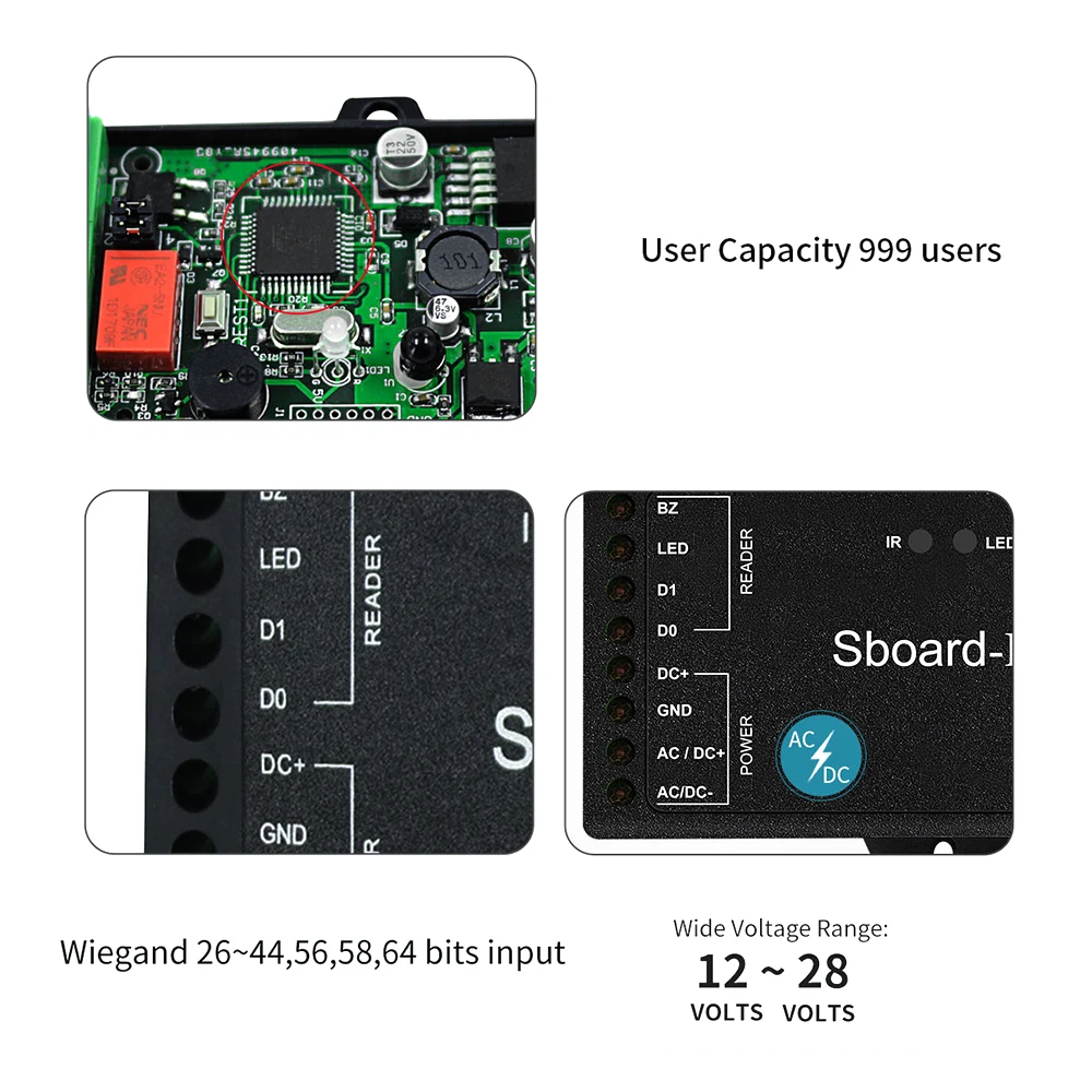 • Несколько режимов доступа: карта, карта или штифт, карта с штифтом и несколько карт/штифтов • Можно подключить к любому ридеру с выходом Wiegand 26 ~ 37 бит • Может подключаться к любому считывателю клавиатуры с 4 битами, 8 битами (ASCII) или 10 битами виртуального номера • Поддержка функции Master Card • Поддержка основной карты