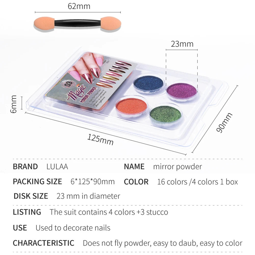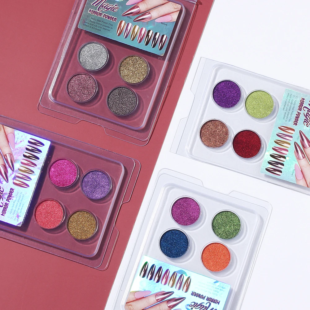 4 цвета/набор зеркальный ногтевой порошок Блестящие Блестки DIY маникюрные украшения