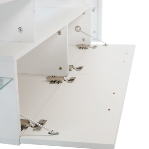 Большое пространство для хранения: стойка для телевизора имеет 2 полки из закаленного стекла и 2 двери, которые могут обеспечить пространство для хранения медиа, Av оборудования, DVD и так далее. Это будет эффективным решением проблемы космоса