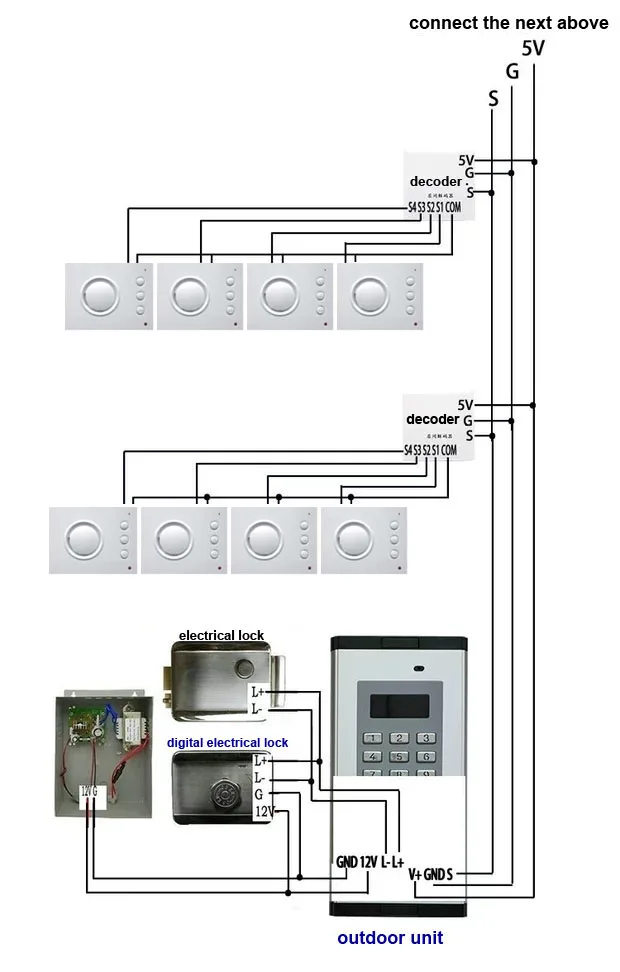 5, основные функции: домофон, разблокировка, управление звонками центр, построили простую дверной звонок интерфейс, Аварийная кнопка, и два 24-х часовые зоны