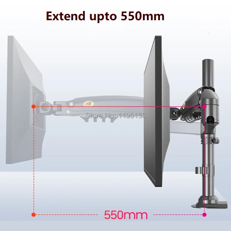 STRONG сильный и экономит пространство-рукоятка монитора NB оснащена сильным зажимом, а также минимизирует впустую пространство рабочего стола. Рукоятка имеет максимальную емкость 9 кг для поддержки даже самых тяжелых экранов.