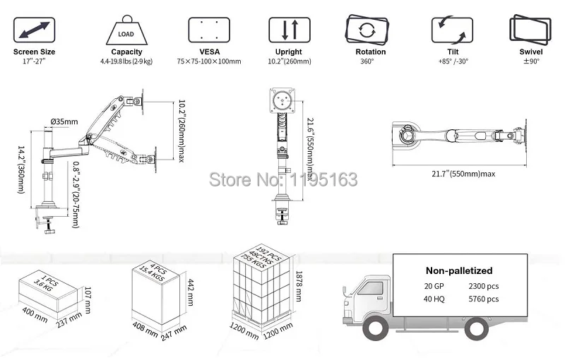 ※ VESA Совместимость-NB монитор с настольной подставкой подходит всем светодиодный и ЖК-дисплей мониторов экраны с VESA размер 75x75 или 100x100. Пожалуйста, проверьте совместимость вашего монитора перед покупкой.