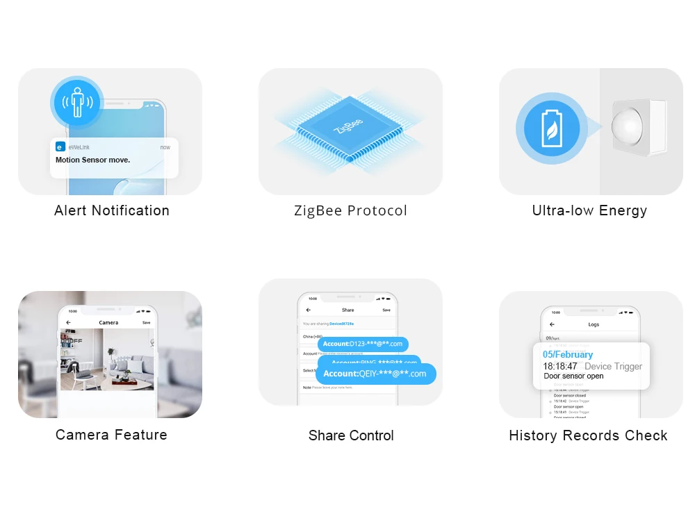 1: любое движение, даже видимое Подключите камеру к датчику движения и поместите датчик практически в любом месте дома, затем вы можете просмотреть, что происходит в вашем доме через камеру на странице датчика приложения. 2: широкоугольное и дальнее Обнаружение Может обеспечить расстояние обнаружения до 6 м и угол до 110 °, когда датчик работает, что обеспечивает Обнаружение подозрительного движения возле вашего дома даже раньше. 3: умная сцена, просыпается ваш дом Хотите, чтобы светильник включался автоматически, когда вы входите в прихожую? Просто установите умную сцену, чтобы активировать ваш дом в действии. 4: интеллектуальная безопасность, простая установка Просто используйте наши прилагаемые 3 м клеи, чтобы получить датчик движения установлен в идеальных местах всего за несколько секунд. 5: уведомление о низком заряде батареи Вы получите уведомление о низком уровне заряда батареи, когда срок службы батареи останется на 10%.