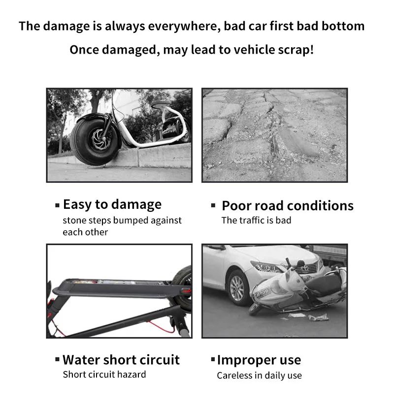 Защита шасси скутера изготовлена из нержавеющей стали 304, с высоким качеством, прочная, износостойкая, водонепроницаемая и устойчивая.
