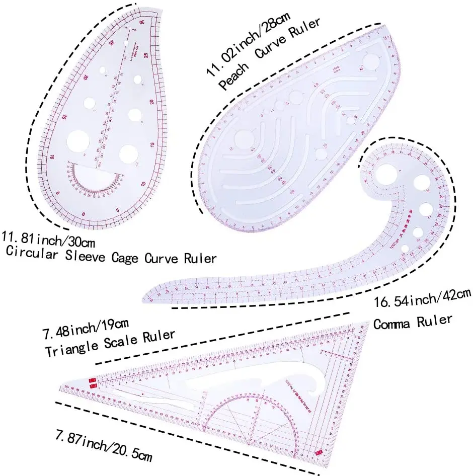 -Прочный и простой в использовании. -Изготовлен из высококачественного пластика, прочный и практичный -Кривые линейки используют встроенный дизайн, который легко изнашивается и точно измеряется в соответствии с вашими потребностями. -Это лучший шаблон для изготовления платьев для студентов, дизайнеров, маркеров узоров и портных. -Отличный инструмент для ручной резки пластин. -Он также используется для рукоделия.