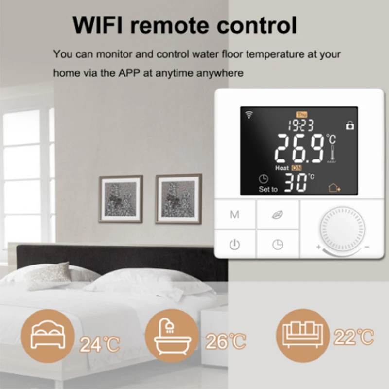 1. Функциональный электрический подогрев пола: управление с помощью Wi-Fi в комплекте для интеллектуального подогрева пола, обеспечивают максимальное и комплексное удобство вашей умной жизни. (Примечание: текущая нагрузка составляет 16А)