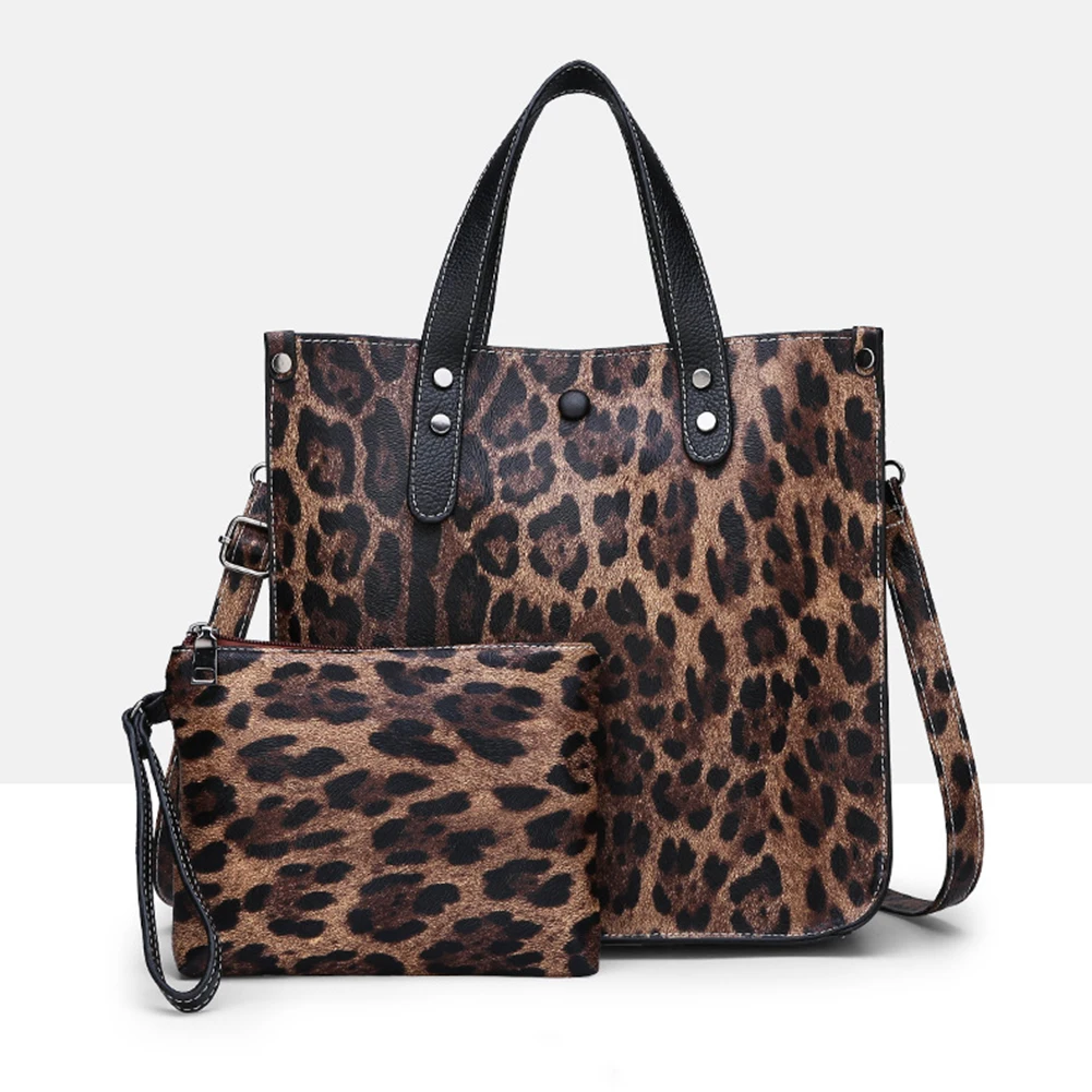 Женская леопардовая Большая вместительная сумка через плечо из искусственной кожи
