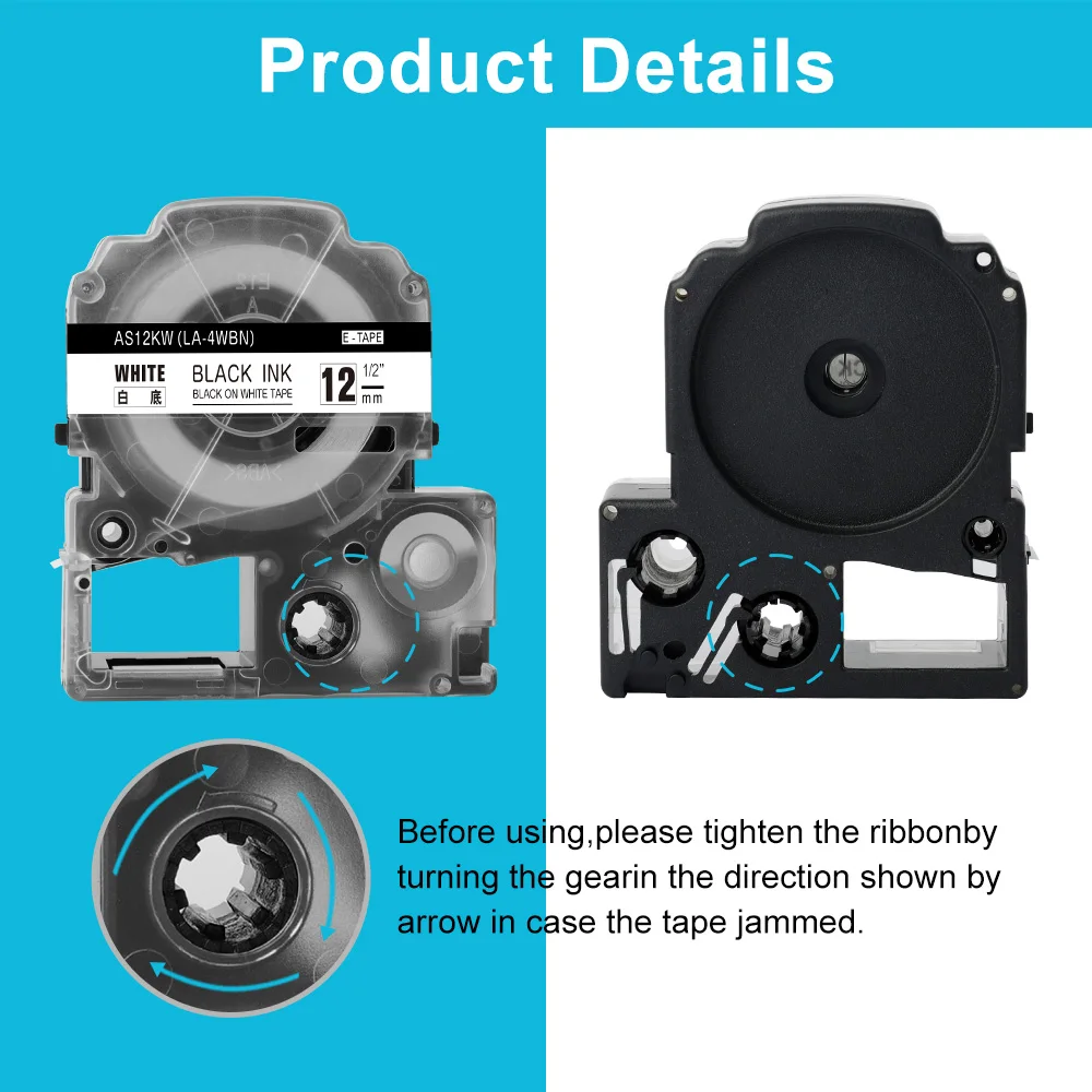 • Пожалуйста,Поверните шестерню в направлении стрелки на ленте(Против часовой стрелки) затяните ленту перед установкой ленты tze в принтеры этикеток и избегайте поломки или помех ленты