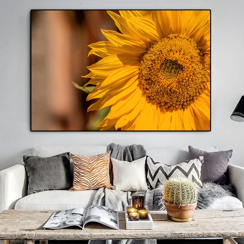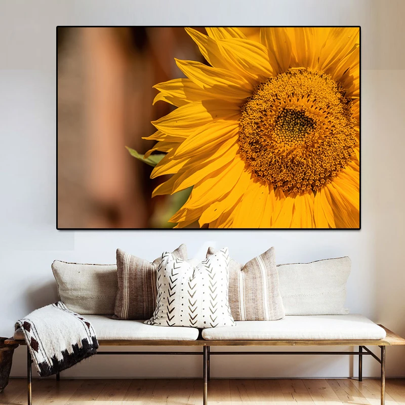 Картина для стены, холст, картина с золотым подсолнухом, прикроватная картина на стене, пасторальное украшение для дома, постеры