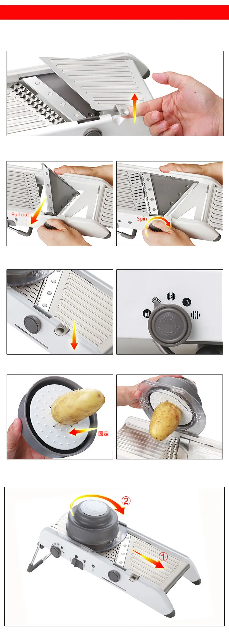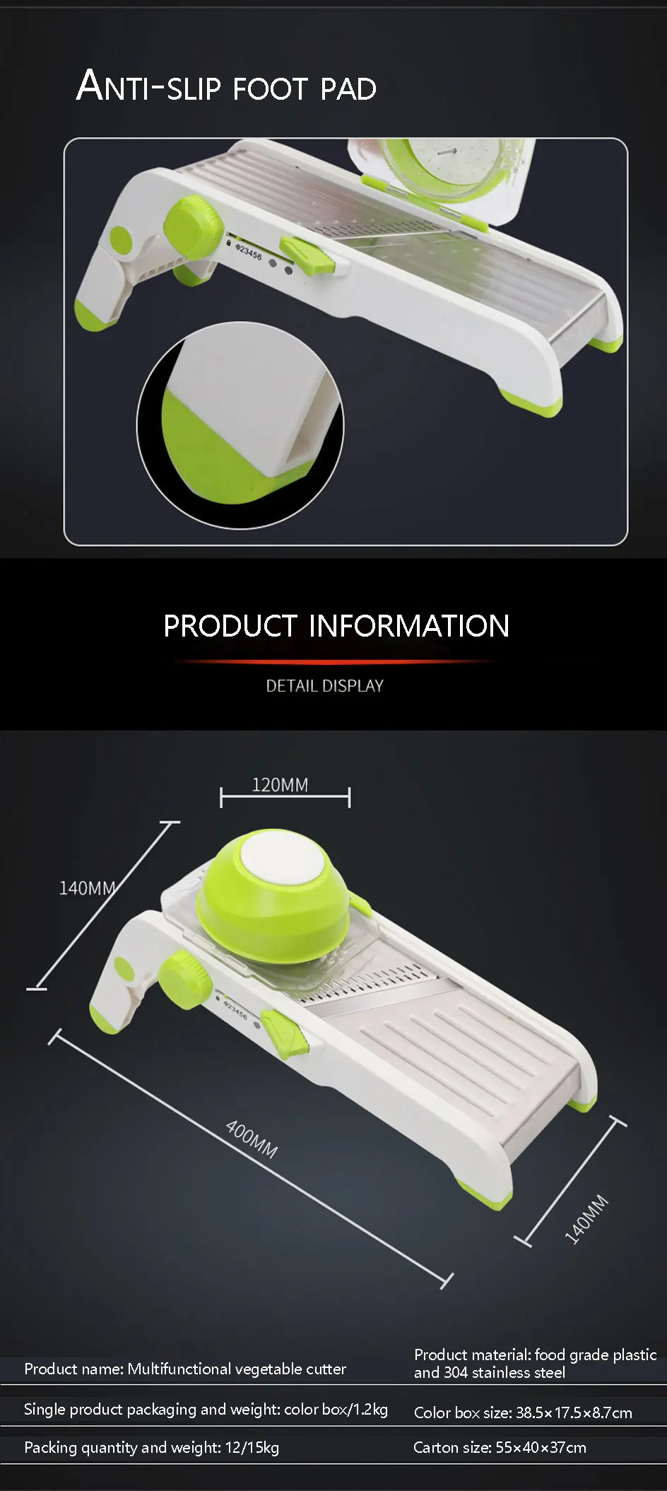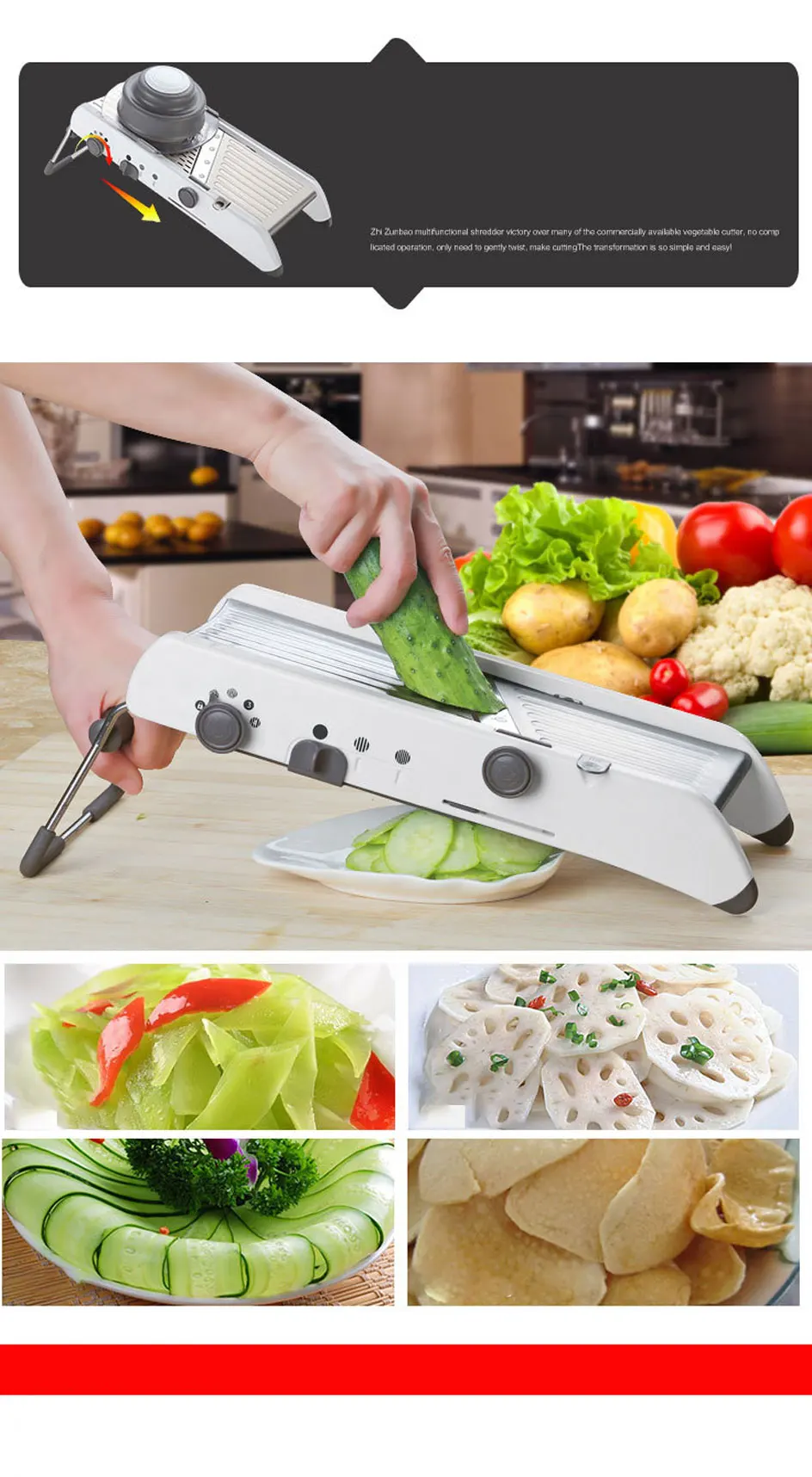 Многофункциональный слайсер мандолина можно отрегулировать до 18 типов ломтиков и шелков разных размеров.