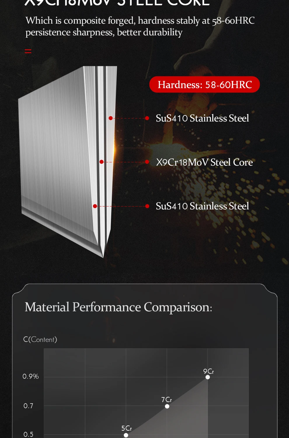 Материал лезвия:3-слойная композитная супер сталь